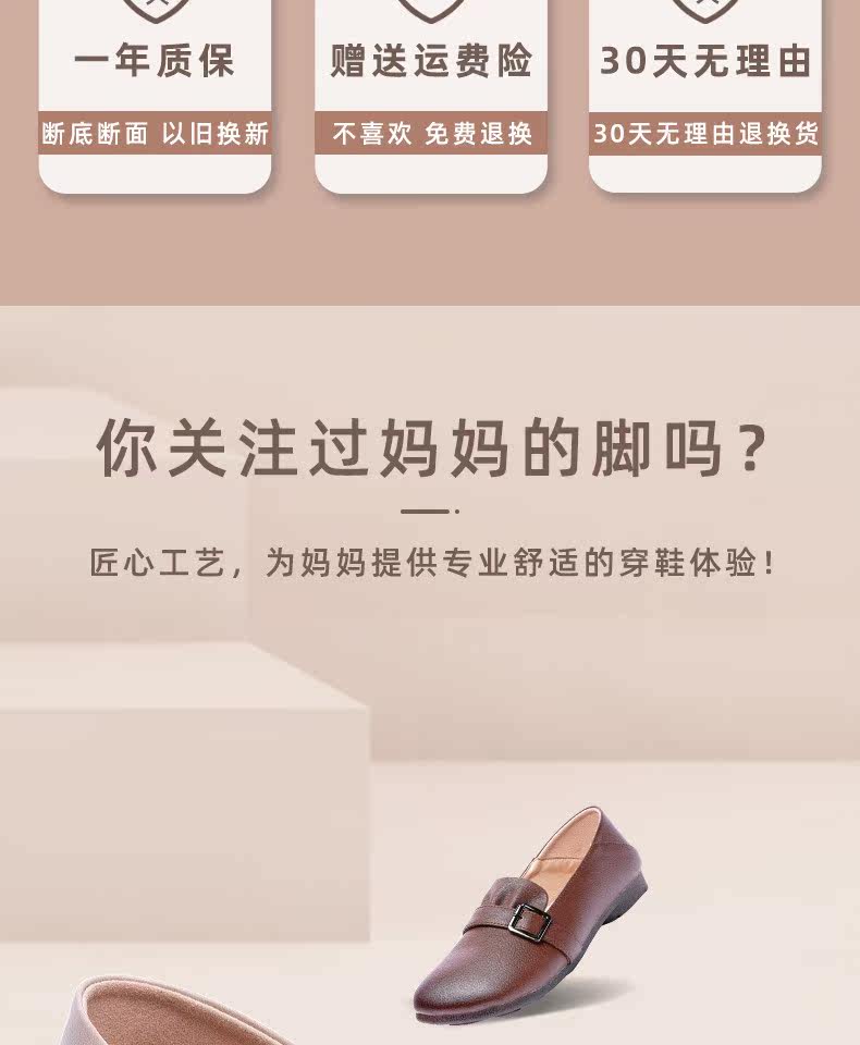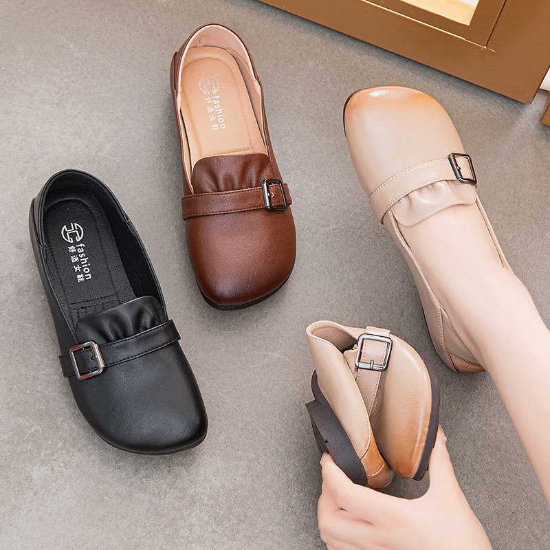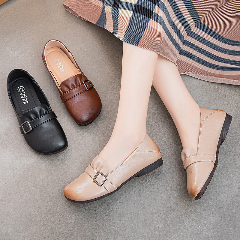 Комфортная нескользящая обувь для матери для кожаной обуви, из натуральной кожи, осенняя, для среднего возраста
