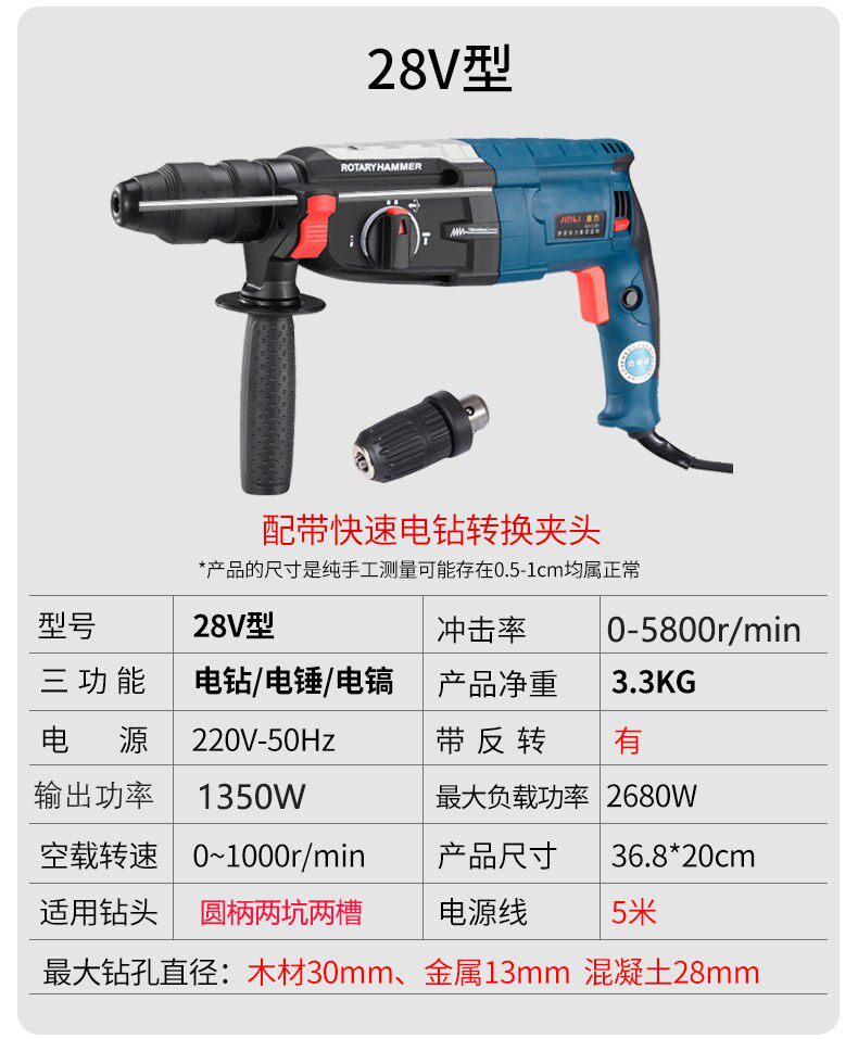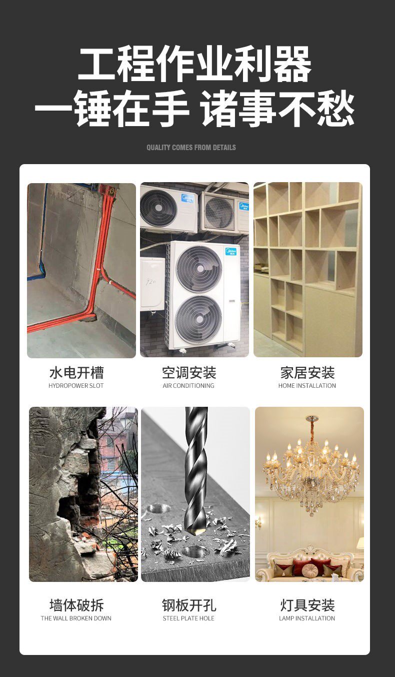 Светлый электрический молот электрический электрический сбор многофункциональный промышленность -Адрейг с высоким содержанием бетона.