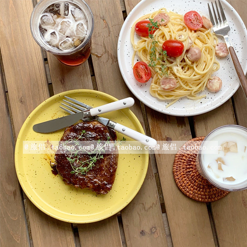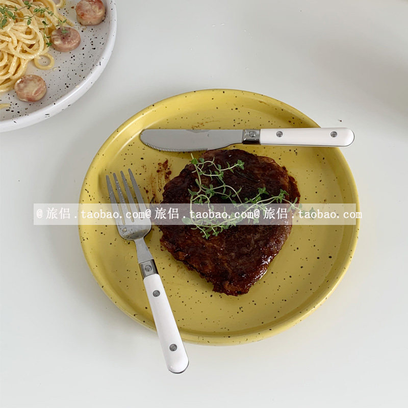 Hanfeng Ins Splashing Ink Ceramic Dableware Western Dining Band Bull Row Pan -Pan -просмотр салат -диск десерт торт диск домашние блюда