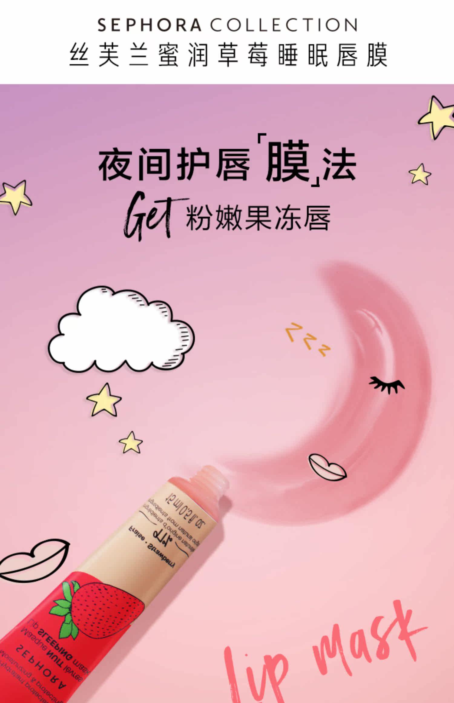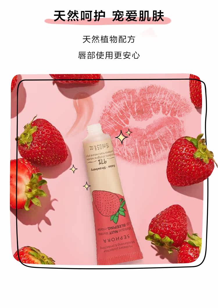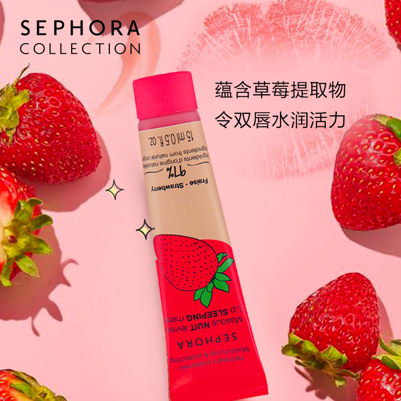 Sephora/丝芙兰 Ночная клубника, увлажняющая восстанавливающая маска для губ