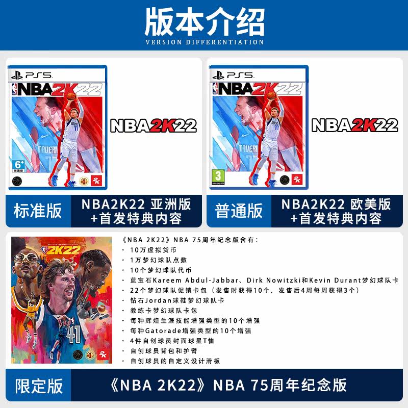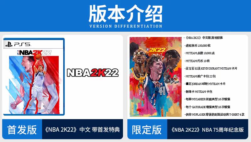 PS5 Game NBA 2K22 75 -й годовщины Limited Edition 2022 Китайцы начинаются со специального кода