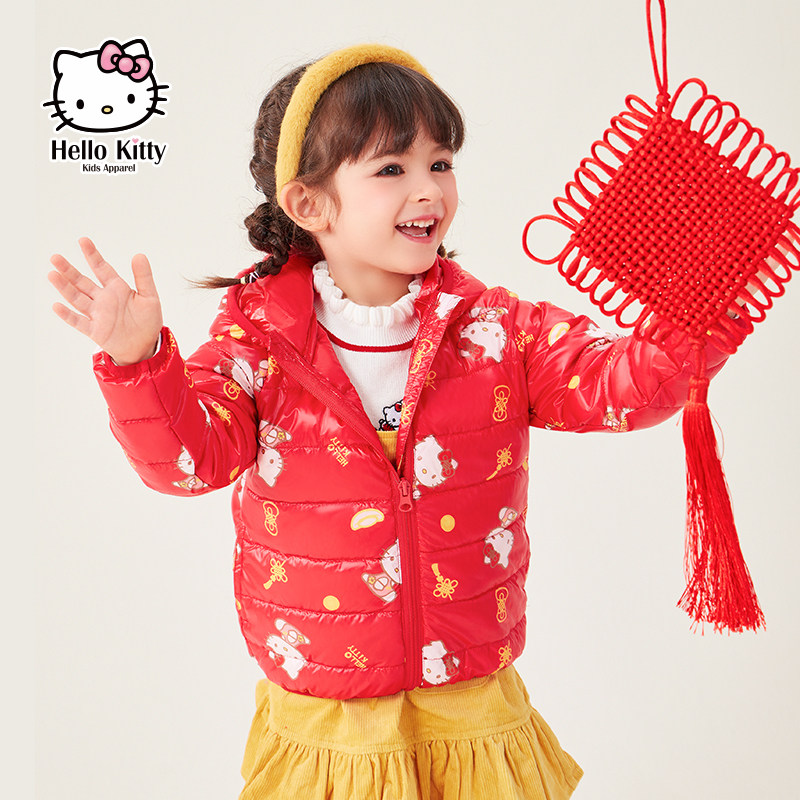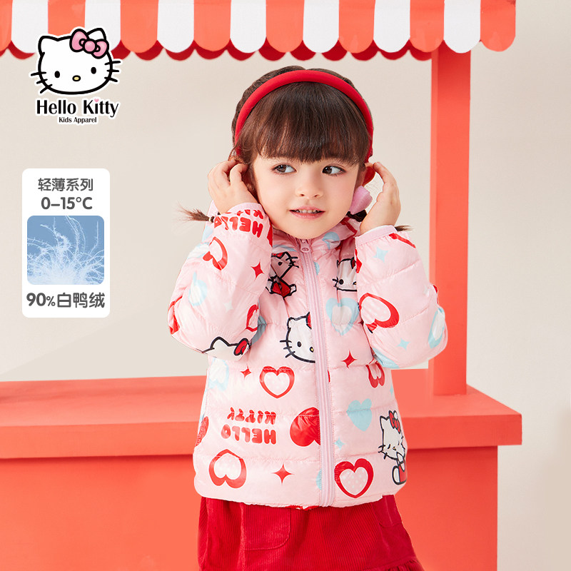 Hello Kitty, зимний бархатный легкий и тонкий удерживающий тепло пуховик, детская одежда, коллекция 2021, подходит для подростков, утиный пух