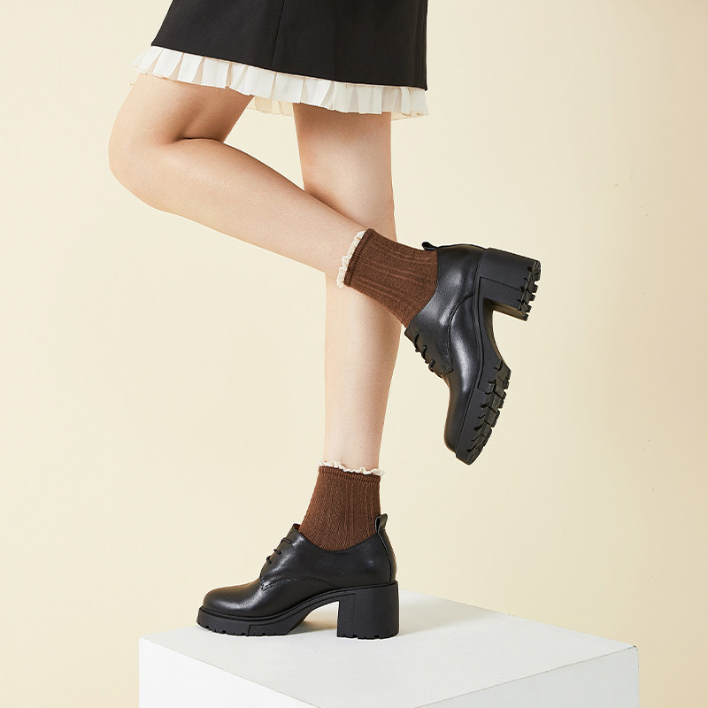 Весенняя высокая обувь в английском стиле для кожаной обуви для отдыха, из натуральной кожи, в британском стиле