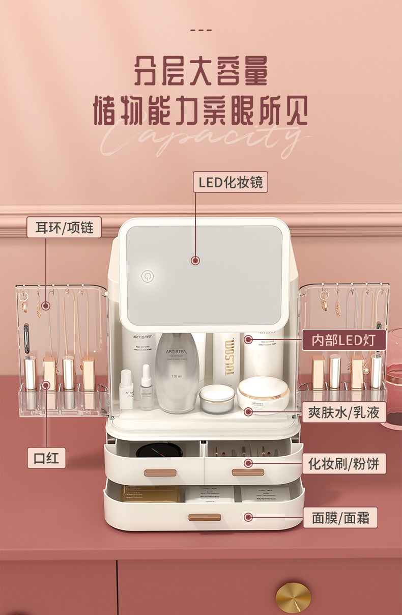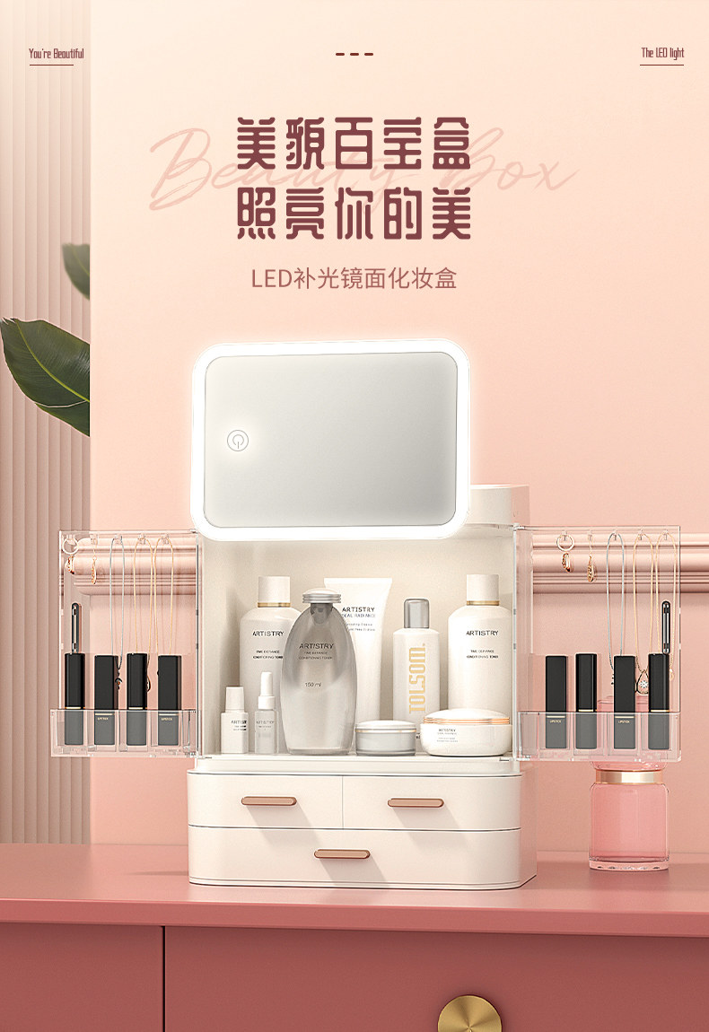 Косметическая ящик для хранения с зеркальными украшениями INS Skin Show Special