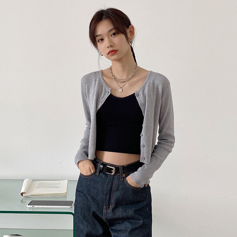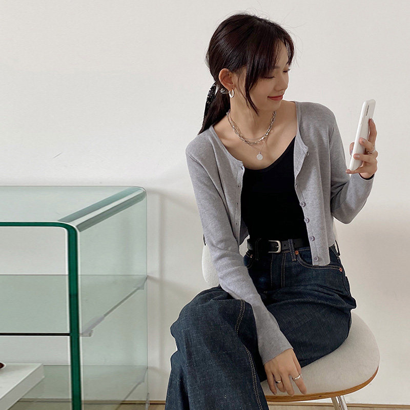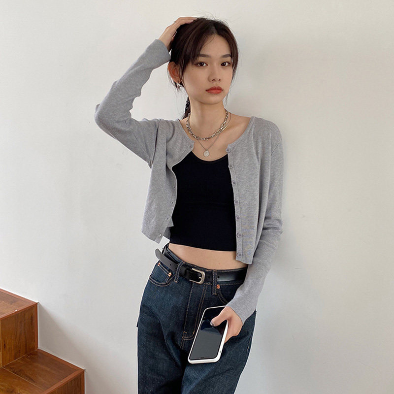 Трикотажный кардиган, приталенная осенняя короткая куртка, подходит для подростков, защита от солнца