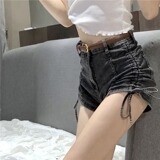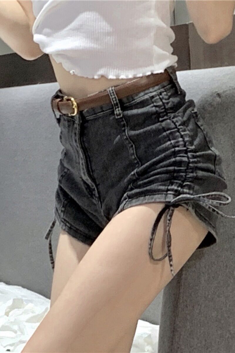 Джинсовая юбка, шорты, тонкие штаны, высокая талия, большой размер, коллекция 2021, свободный крой, на шнурках