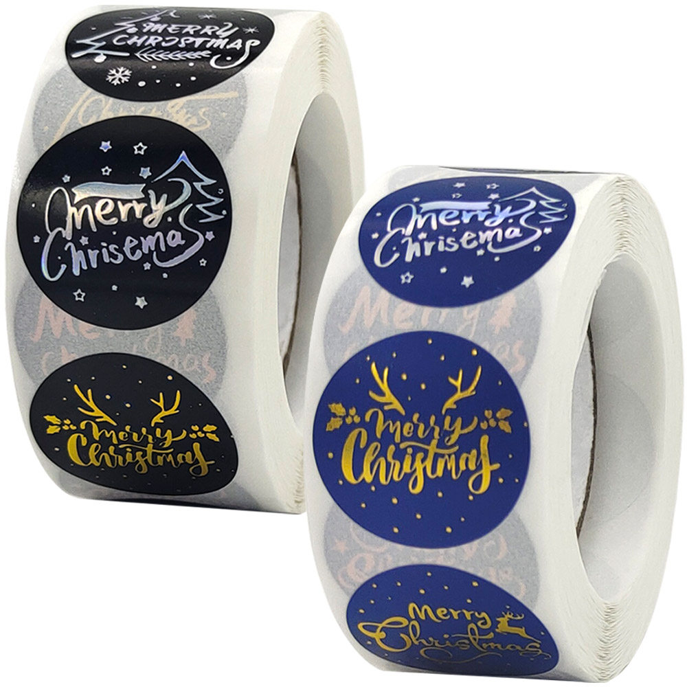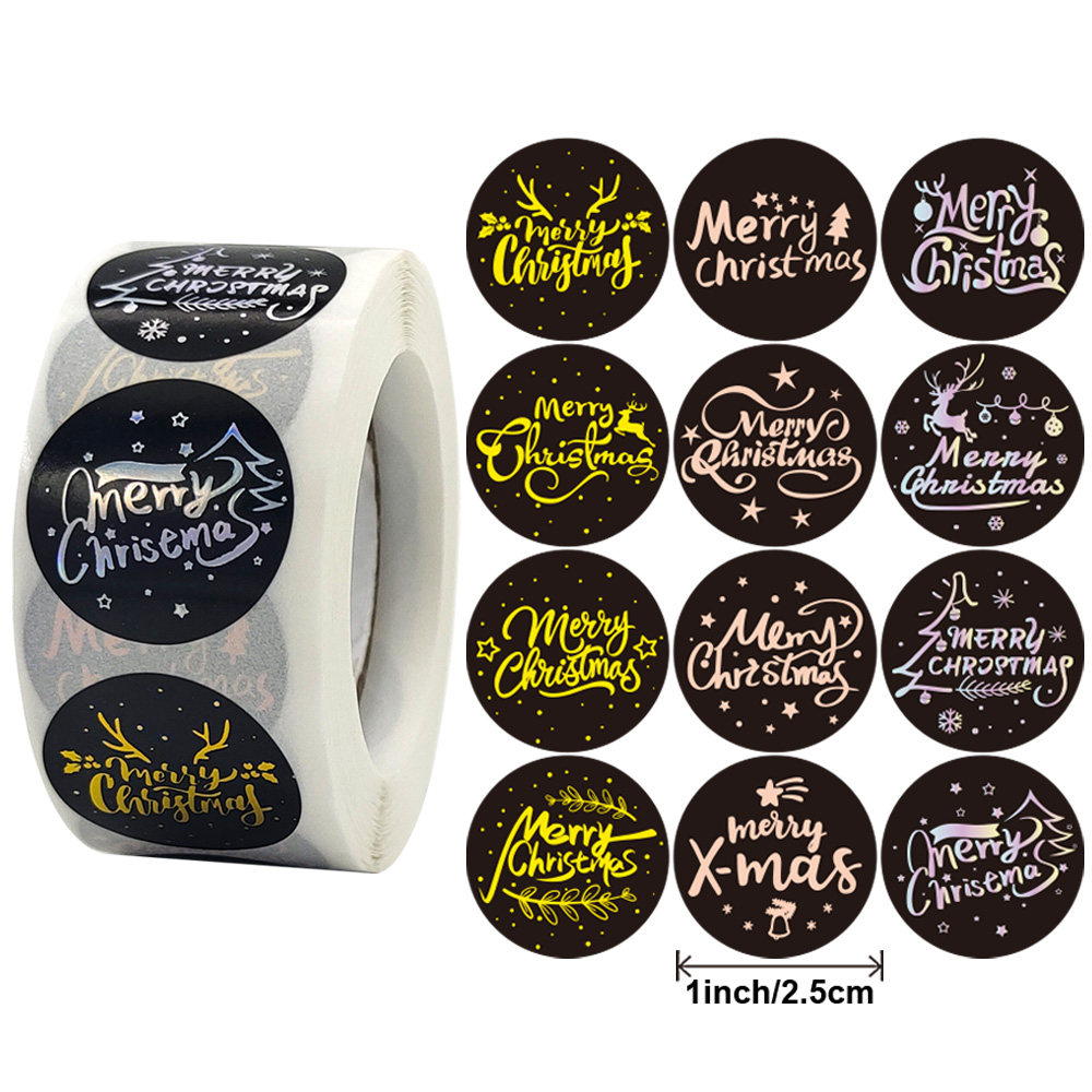 Золотая штамповка лазерная серебряная рождественская украшение подарки500 наклеек/рулон, диаметр одной наклейки 2,5 см