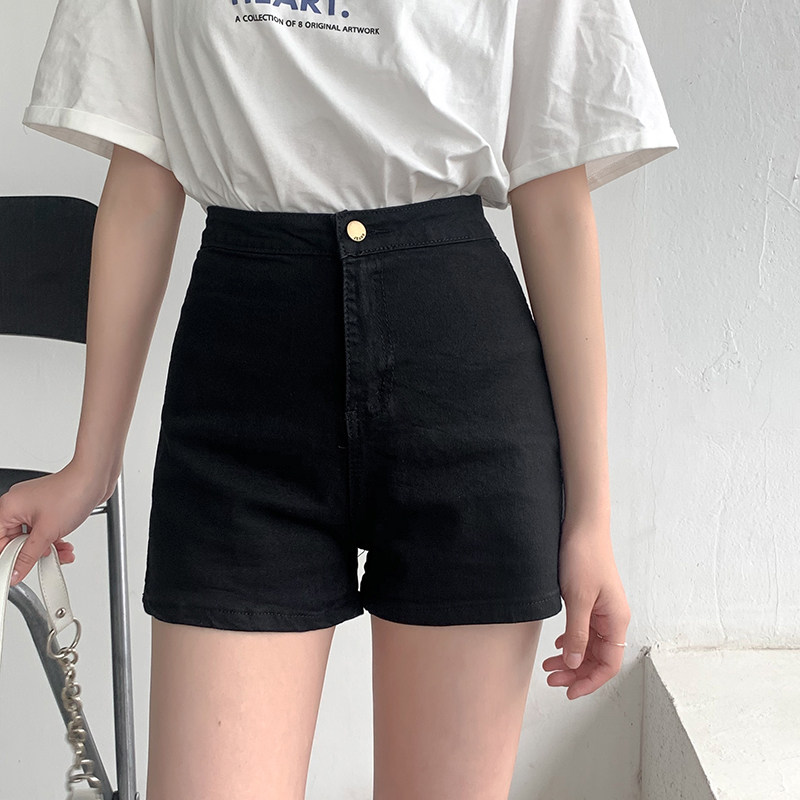Черные джинсовые весенние шорты, приталенные эластичные штаны, высокая талия, в обтяжку, свободный прямой крой, размер, подходит для полных девушек