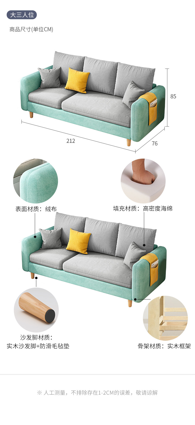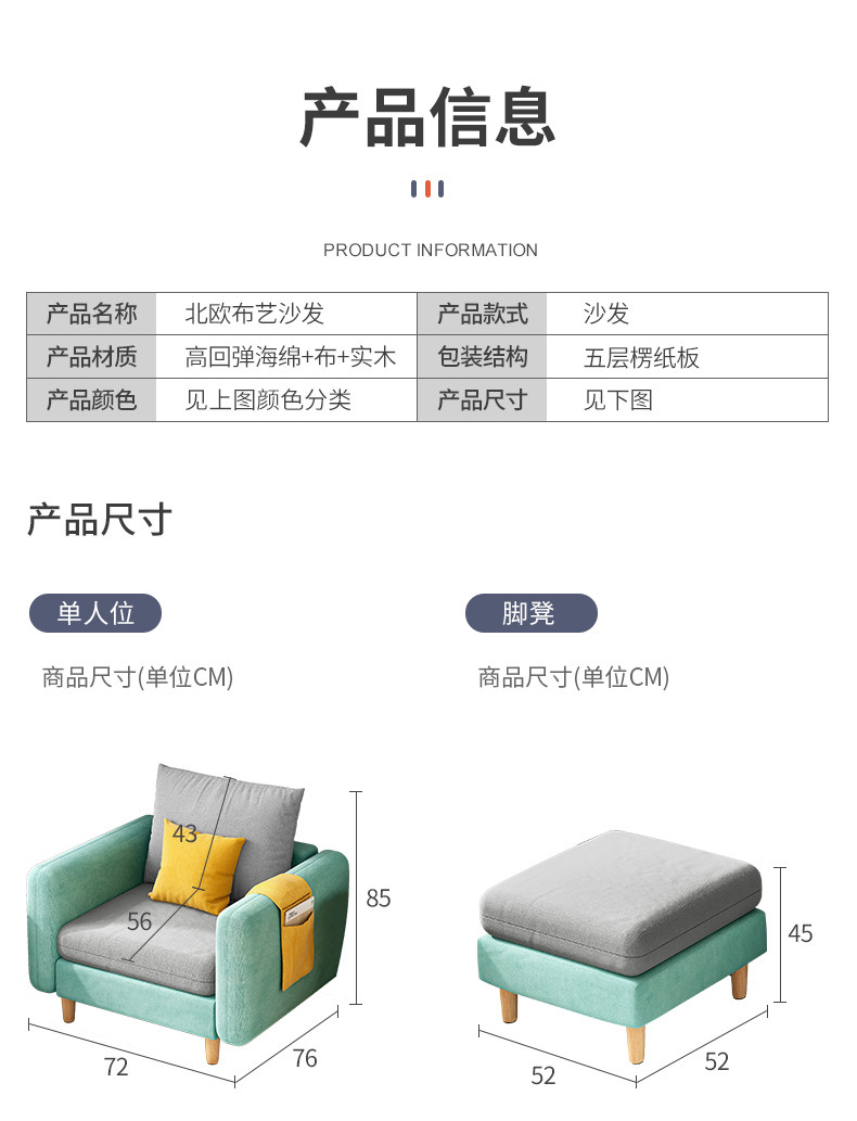 Ткань, современный и минималистичный простой диван для гостиной, популярно в интернете