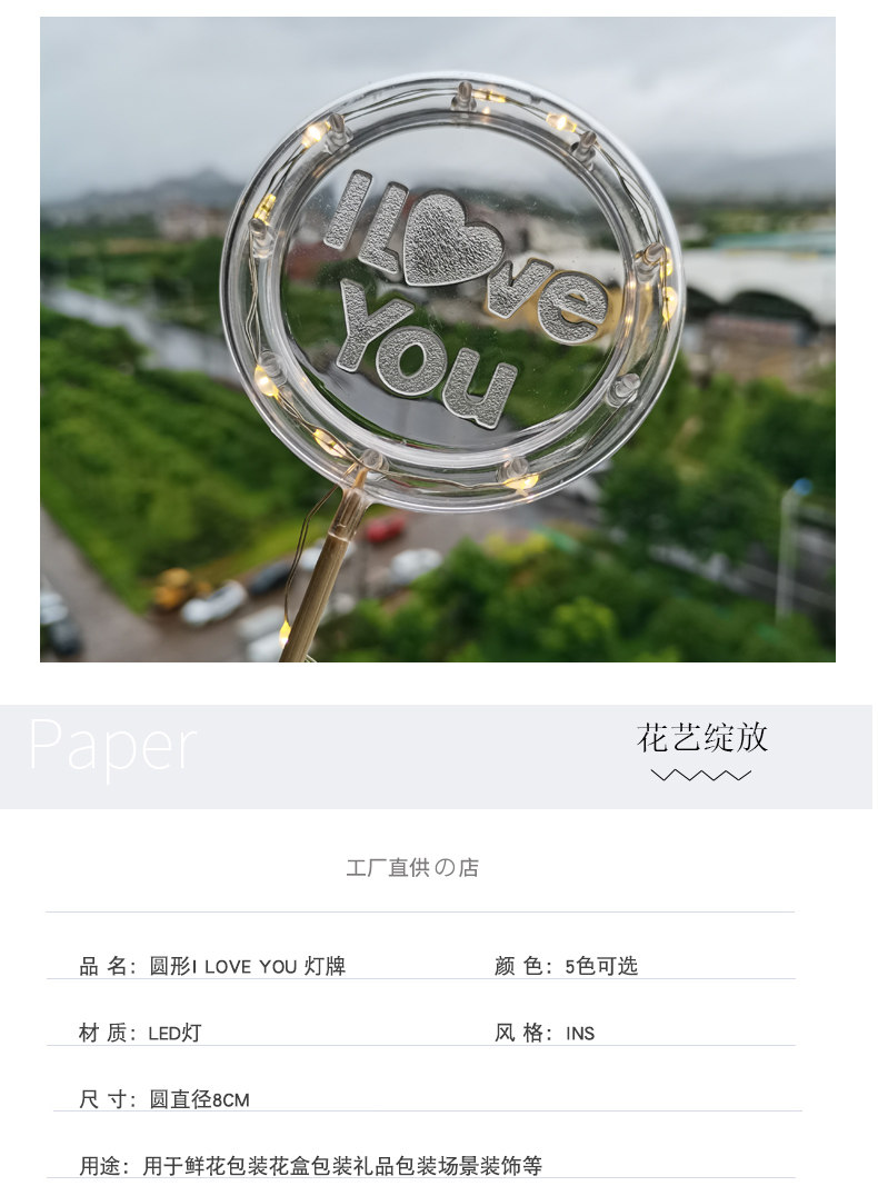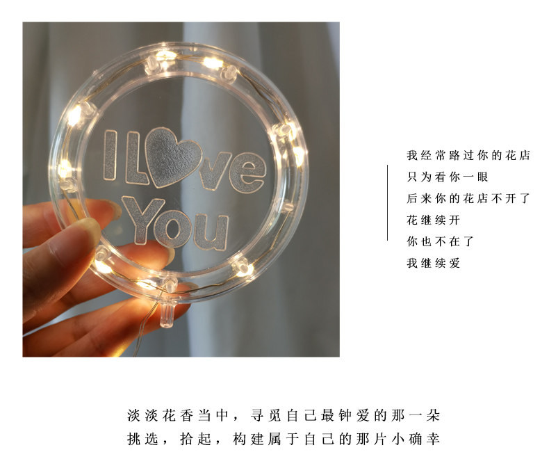 День святого Валентина Круглая буква Я люблю тебя светлую карту светодиодная световая световая цветочный букет букет легкая линия торт украшения