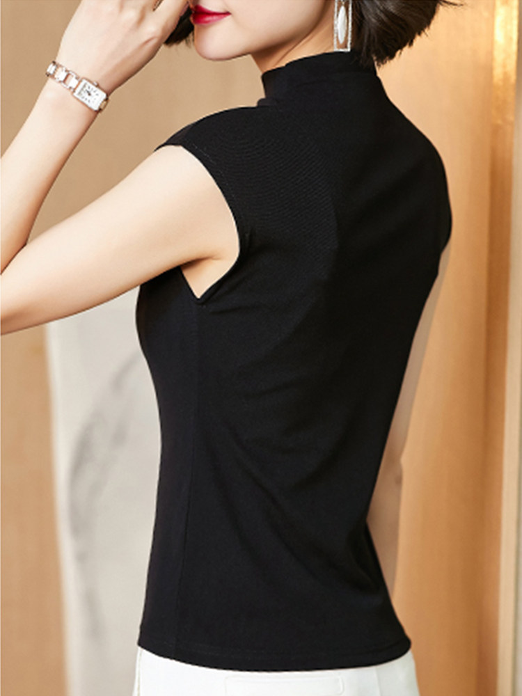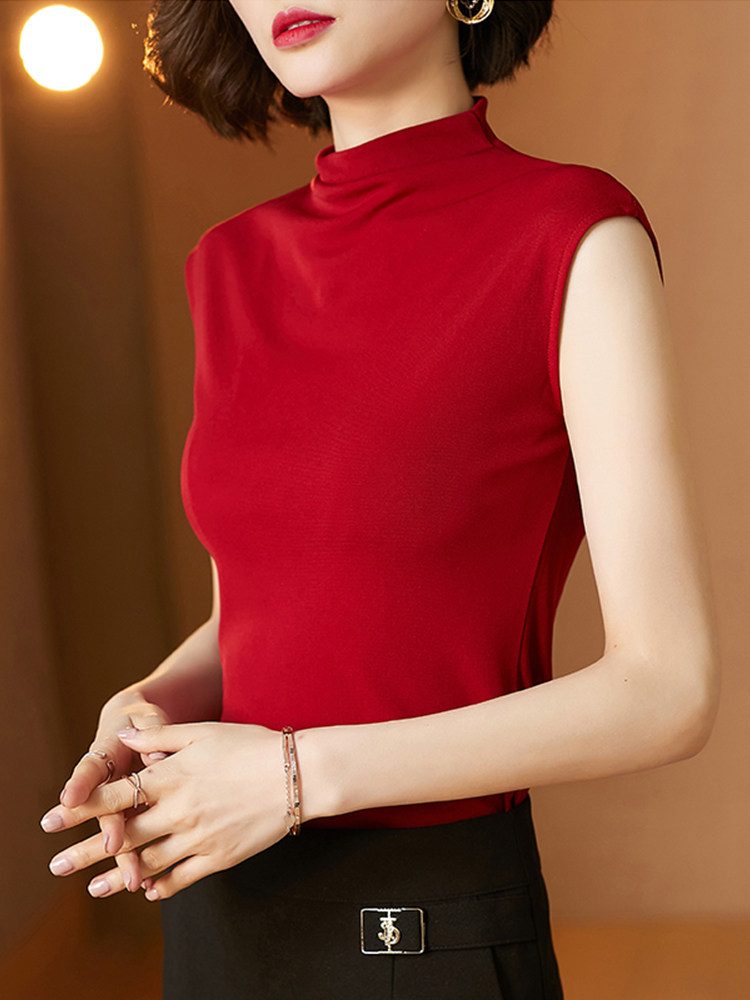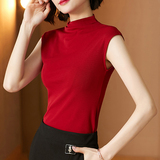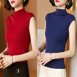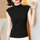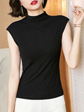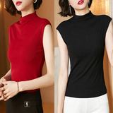 Демисезонная футболка без рукавов, трикотажный жилет, тонкая базовая приятная телу майка топ, высокий воротник