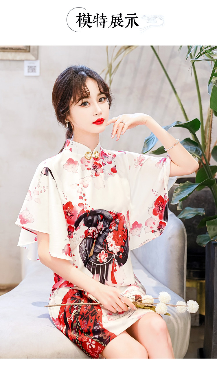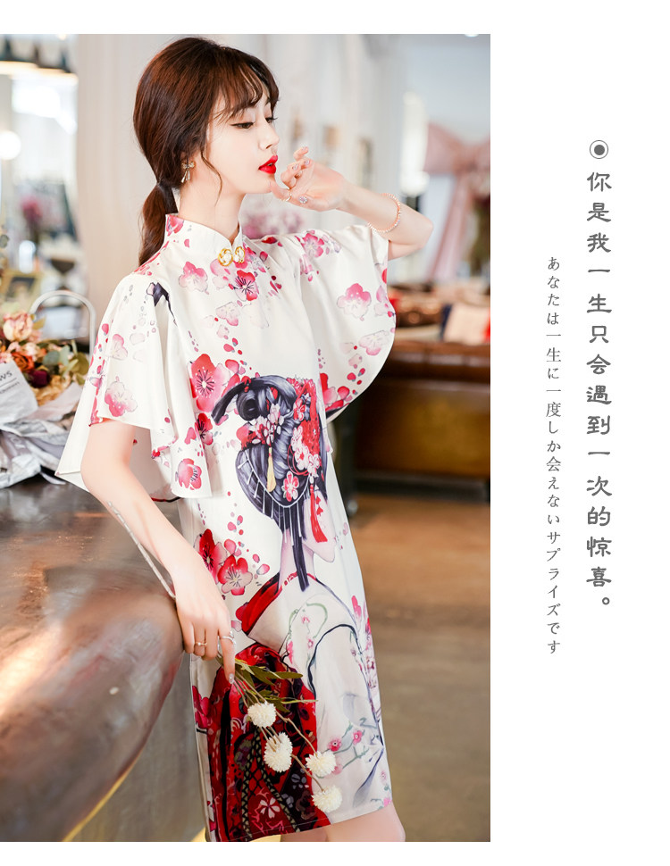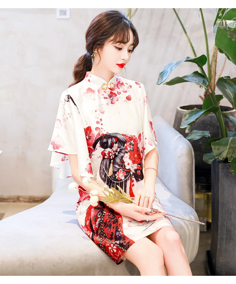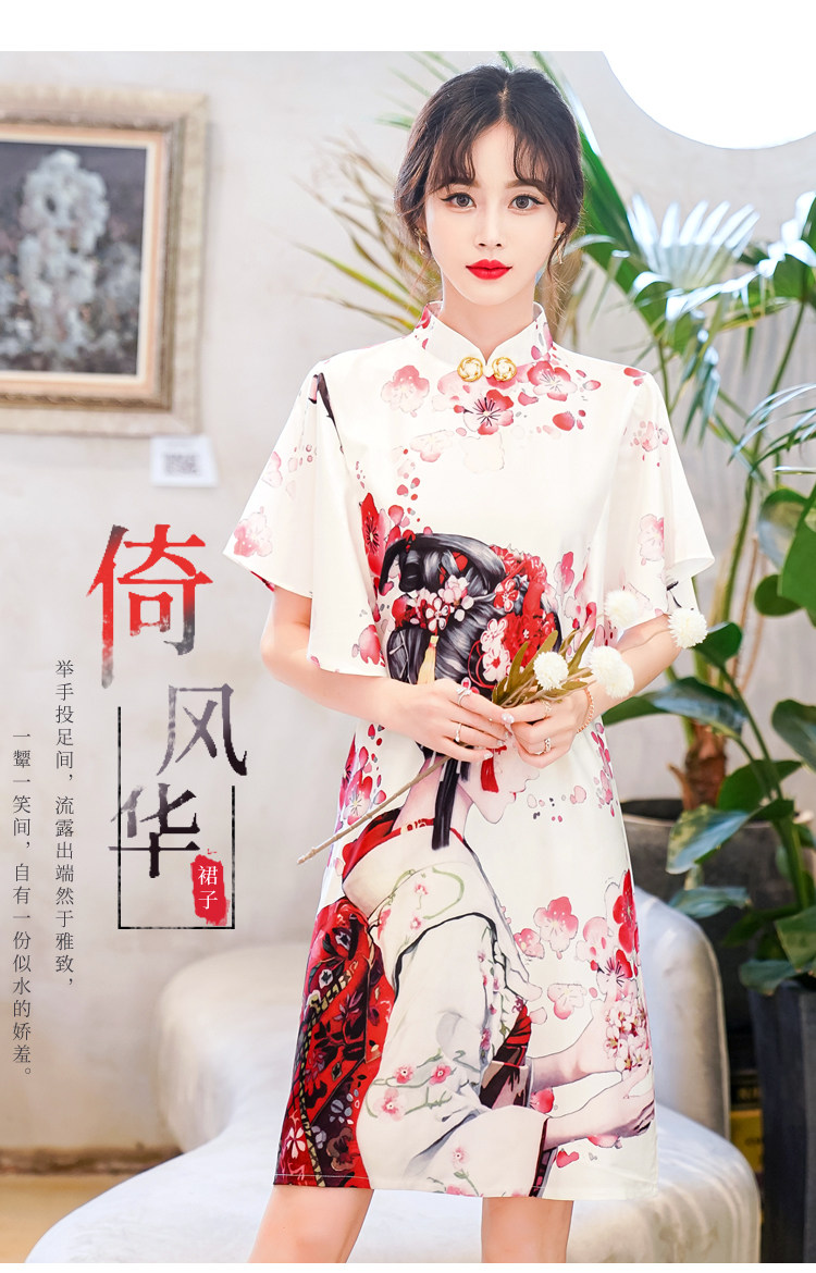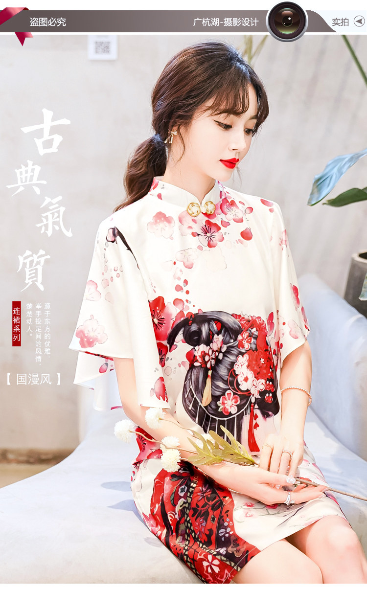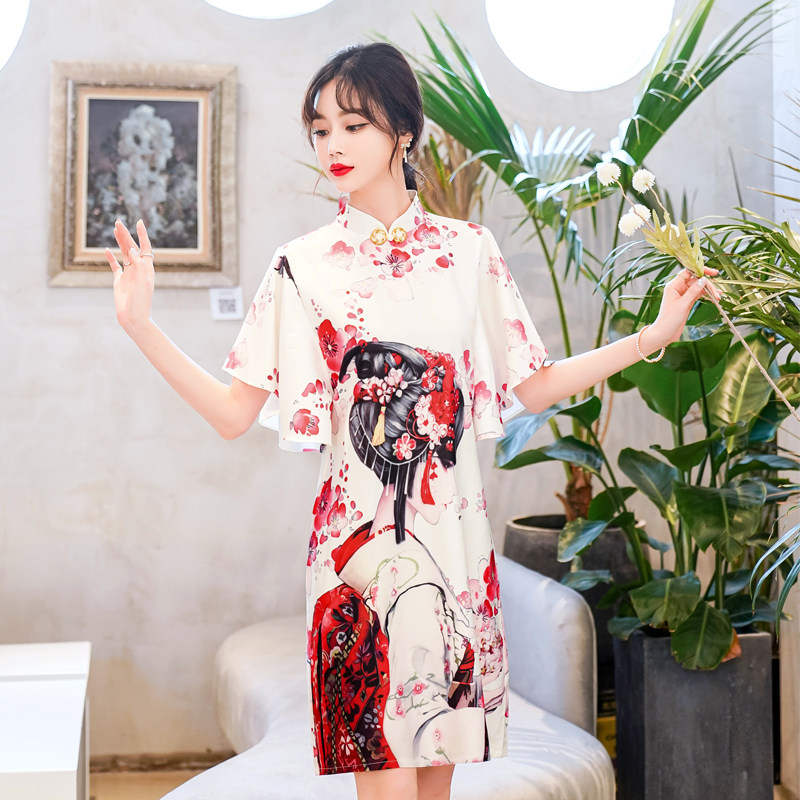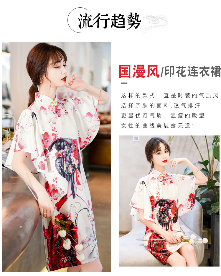 Короткое ципао, этническая ретро летняя одежда, платье, коллекция 2021, этнический стиль, в цветочек