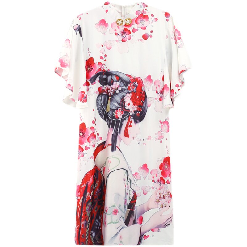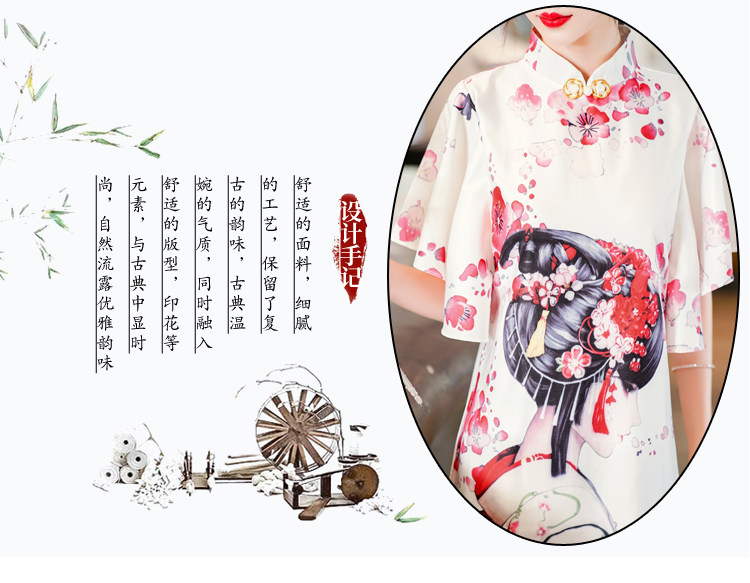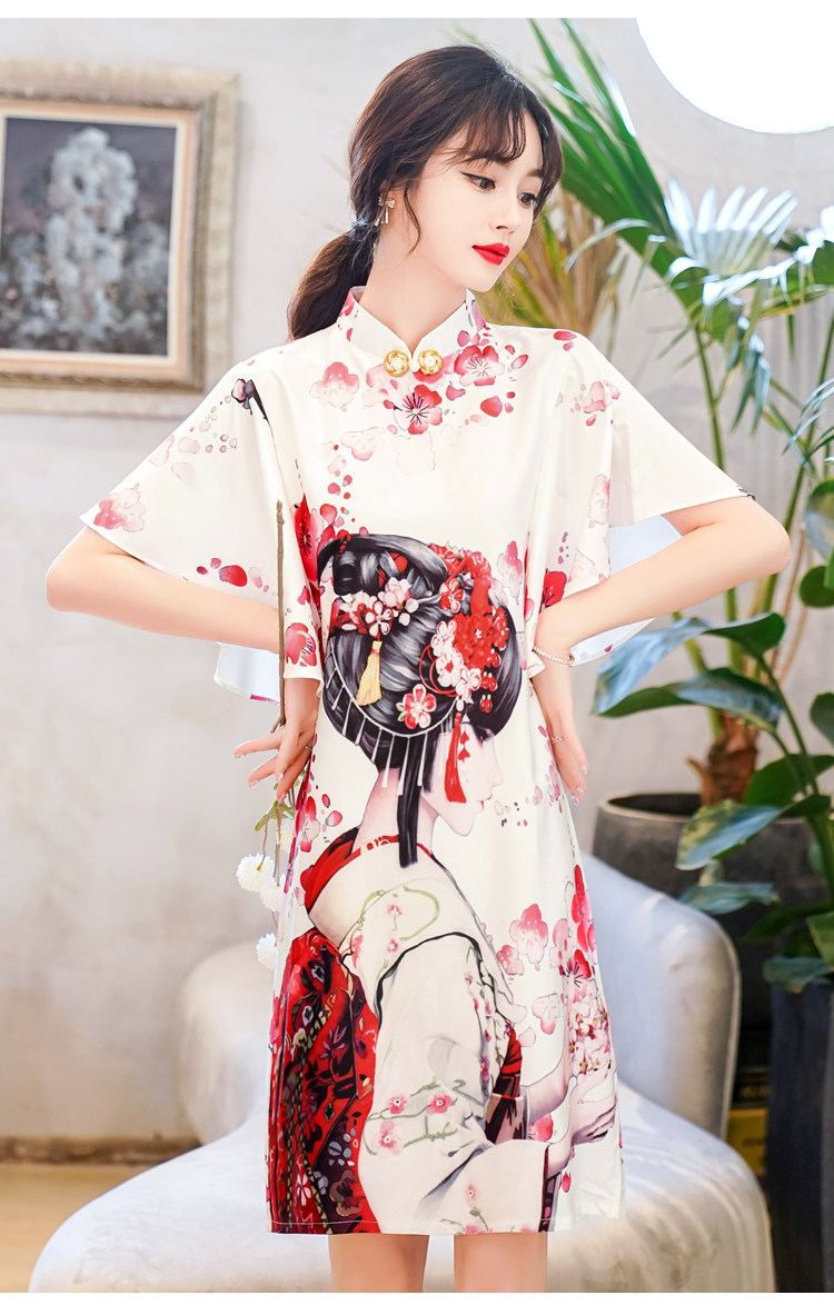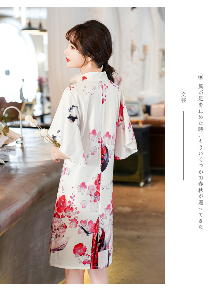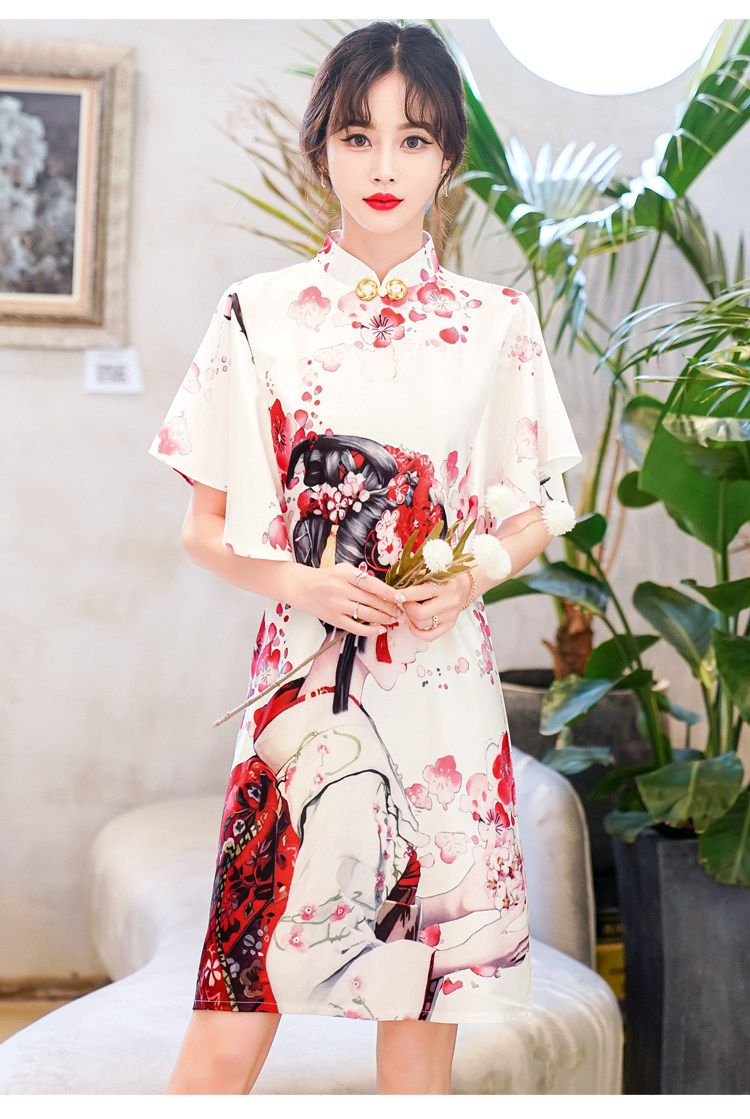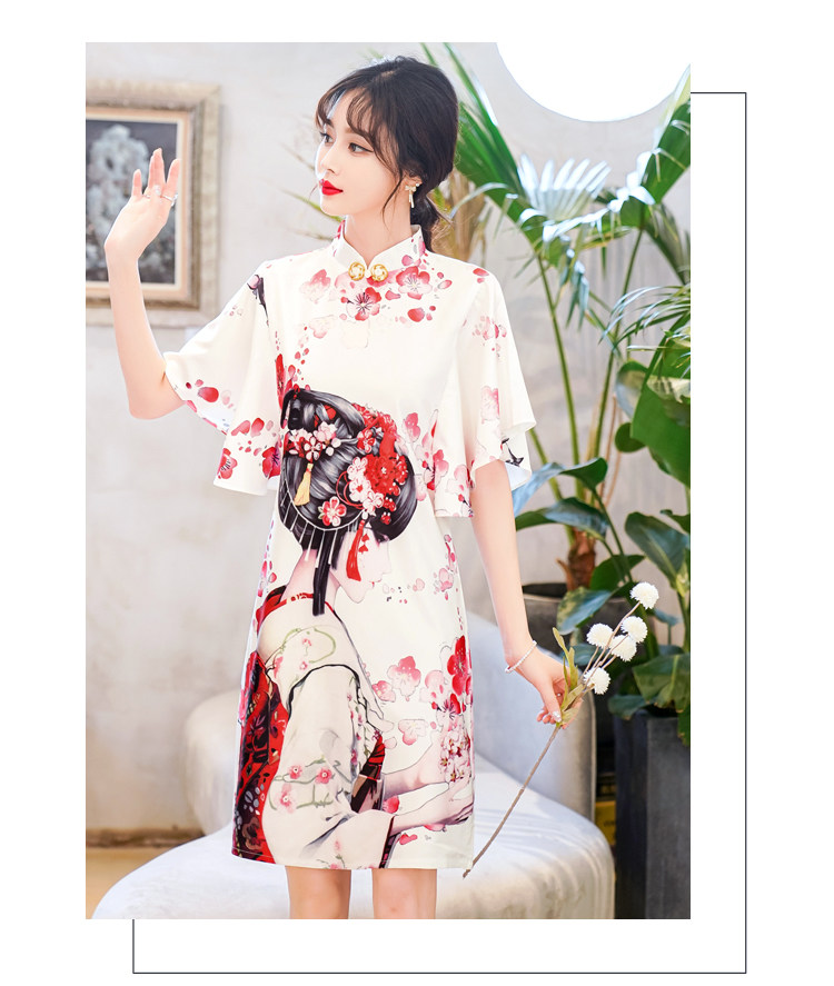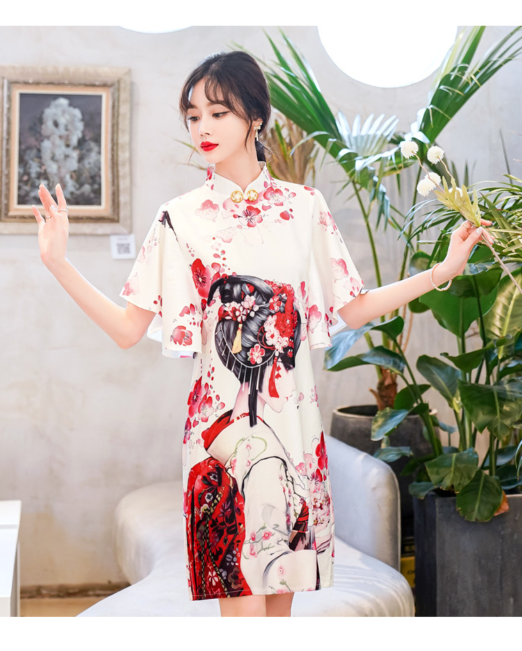 Короткое ципао, этническая ретро летняя одежда, платье, коллекция 2021, этнический стиль, в цветочек