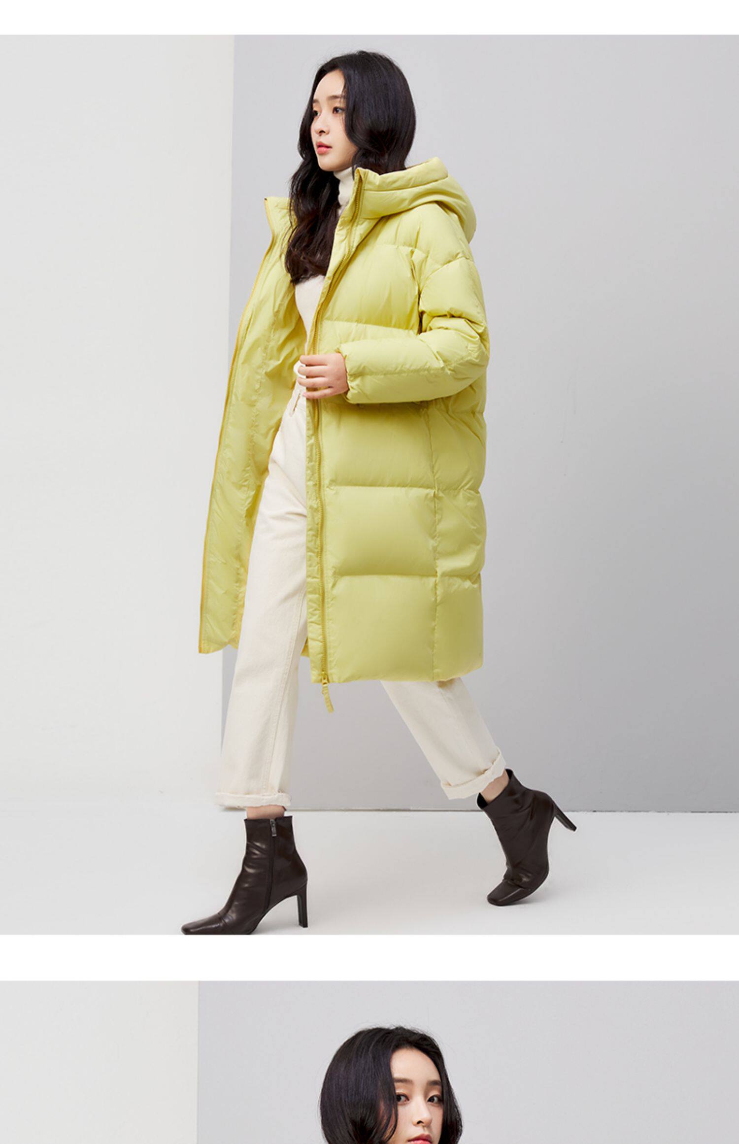 Демисезонный трендовый удерживающий тепло пуховик с капюшоном, средней длины