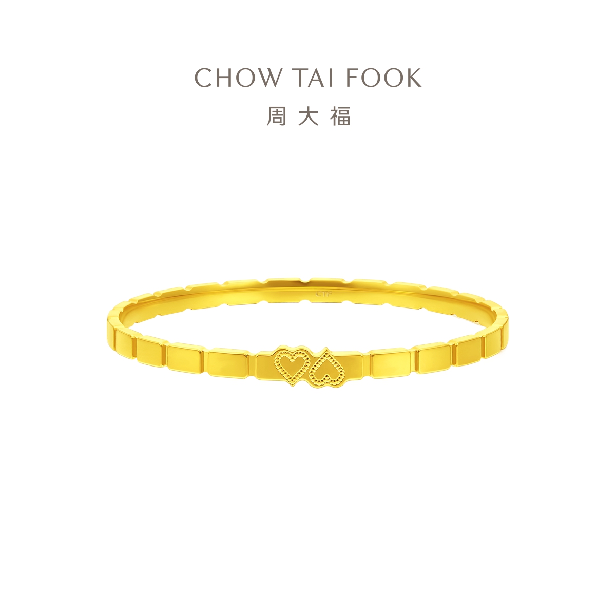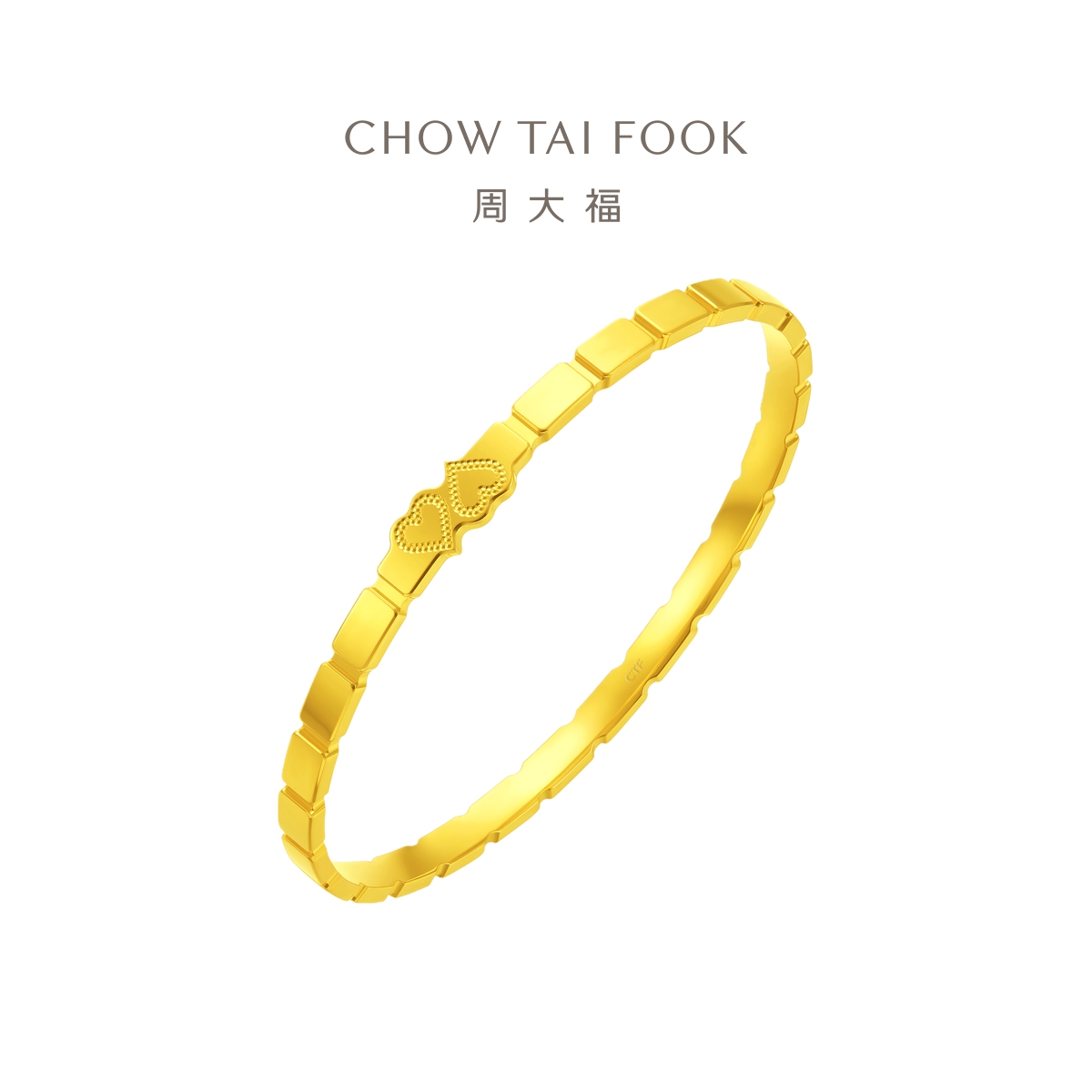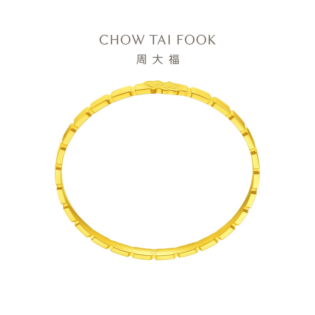 周大福 Золотой браслет в форме сердца, зеркальный эффект
