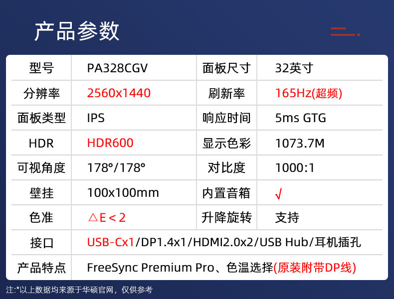 - Proart PA328CGV (2K разрешение/165 Гц. Скорость обновления/поддержка HDR/встроенный динамик)