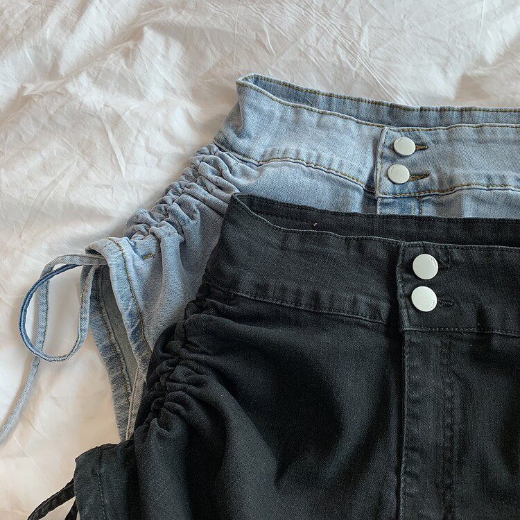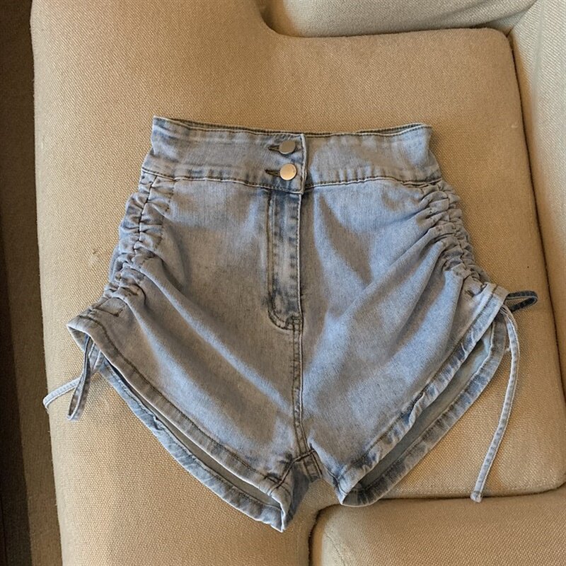 Ремень, шорты, тонкие штаны, эластичные джинсы, на шнурках, большой размер, европейский стиль, с акцентом на бедрах