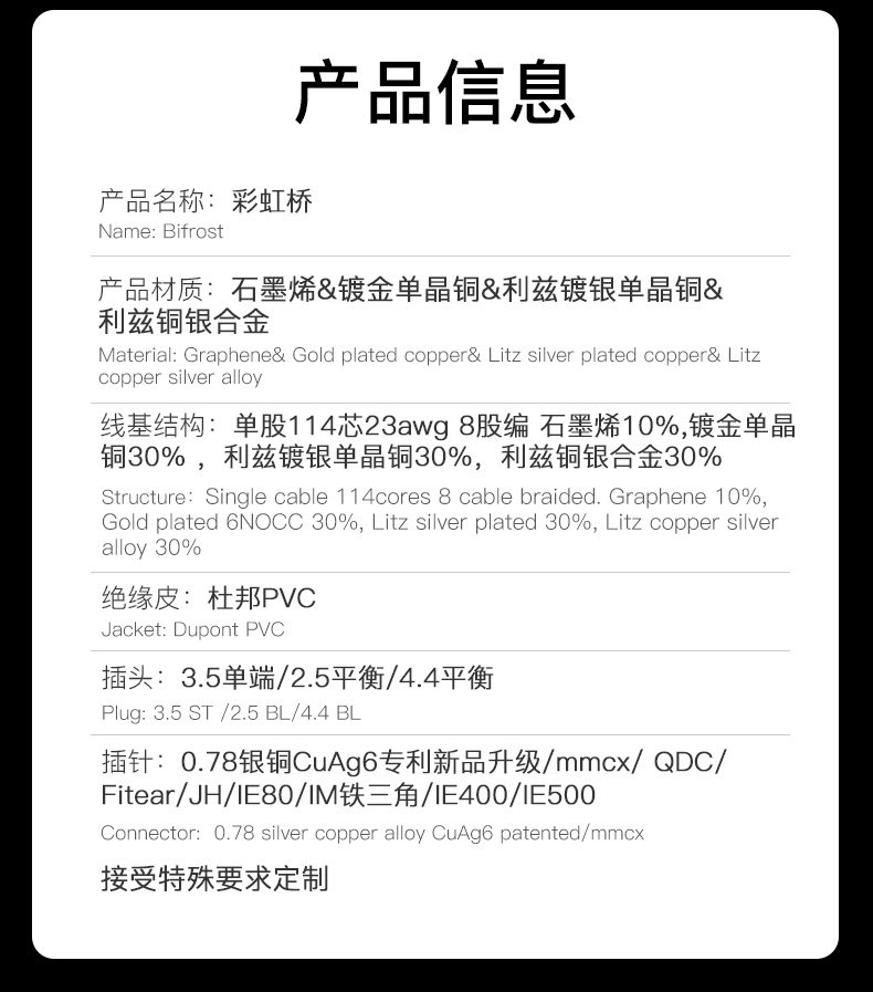 Hakugugei Rainbow Bridge Graphene Tribenlone Гибридная линия обновления 3,5/2,5/4,4 0,78 MMCX
