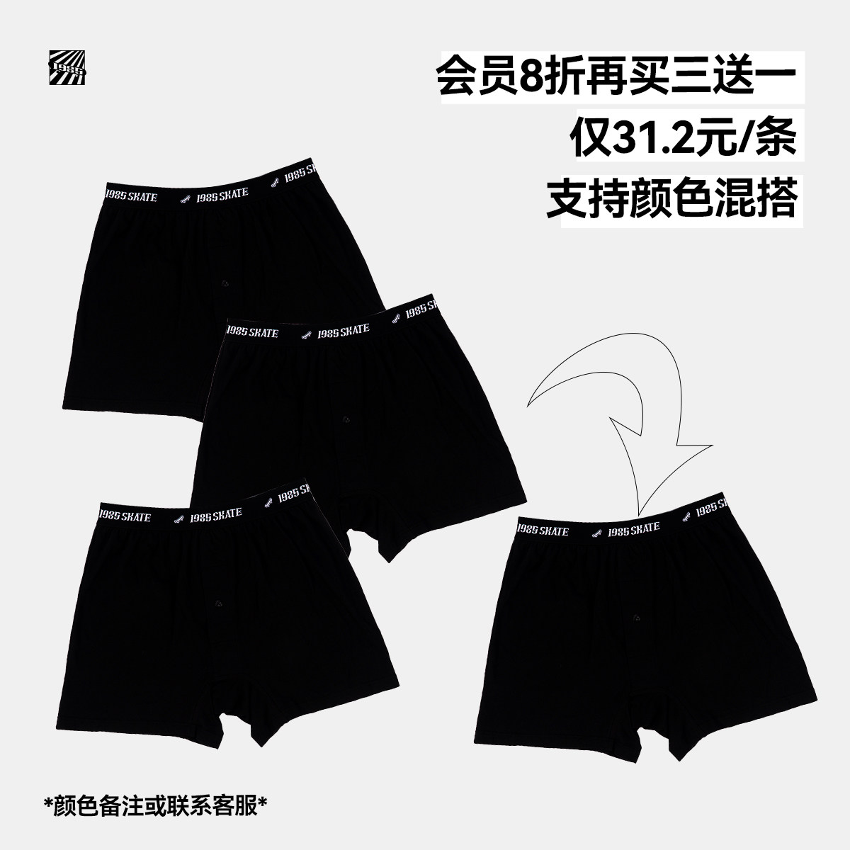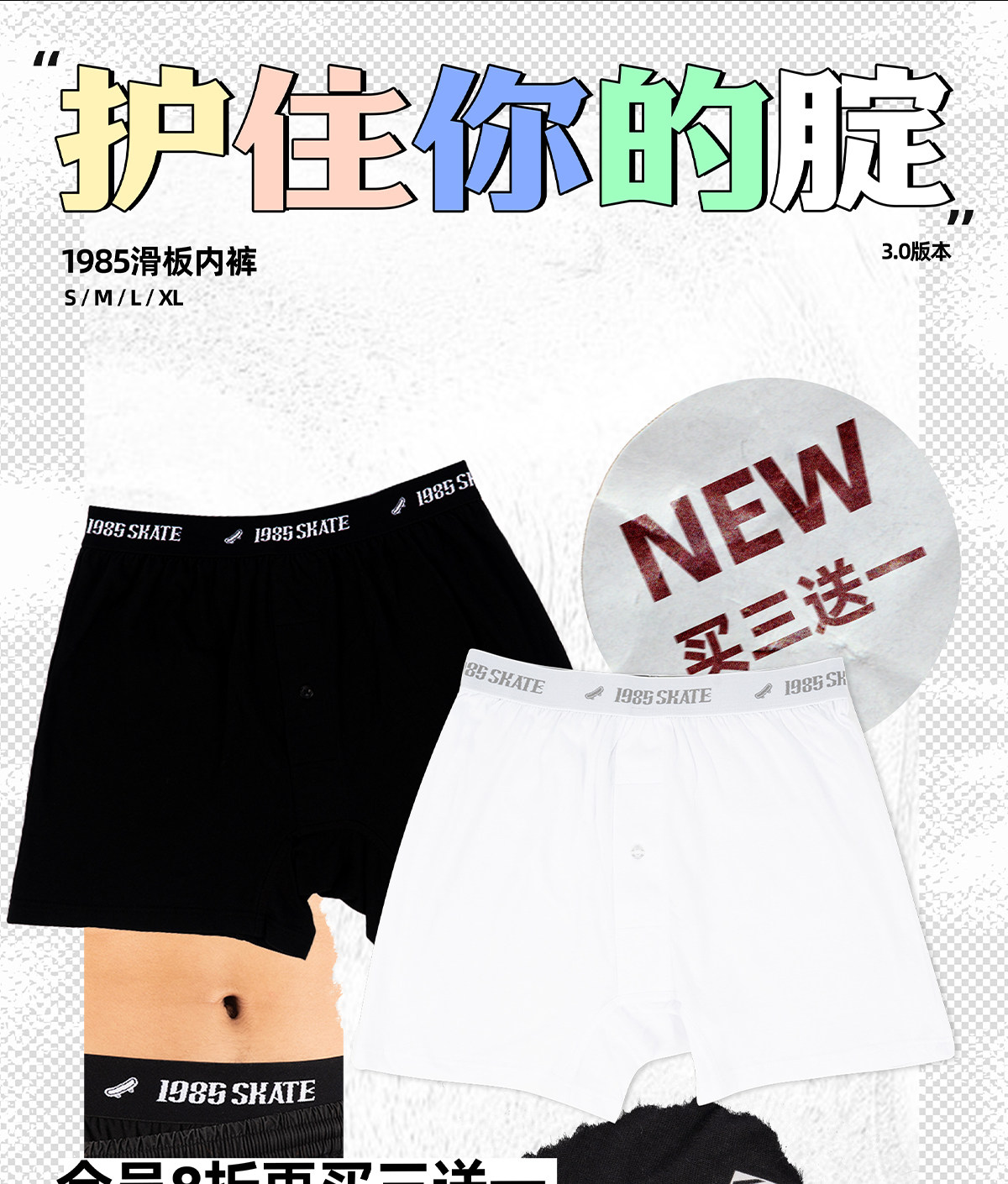 Скейтборд, мужское дышащее комфортное спортивное нижнее белье, средняя посадка, свободный крой