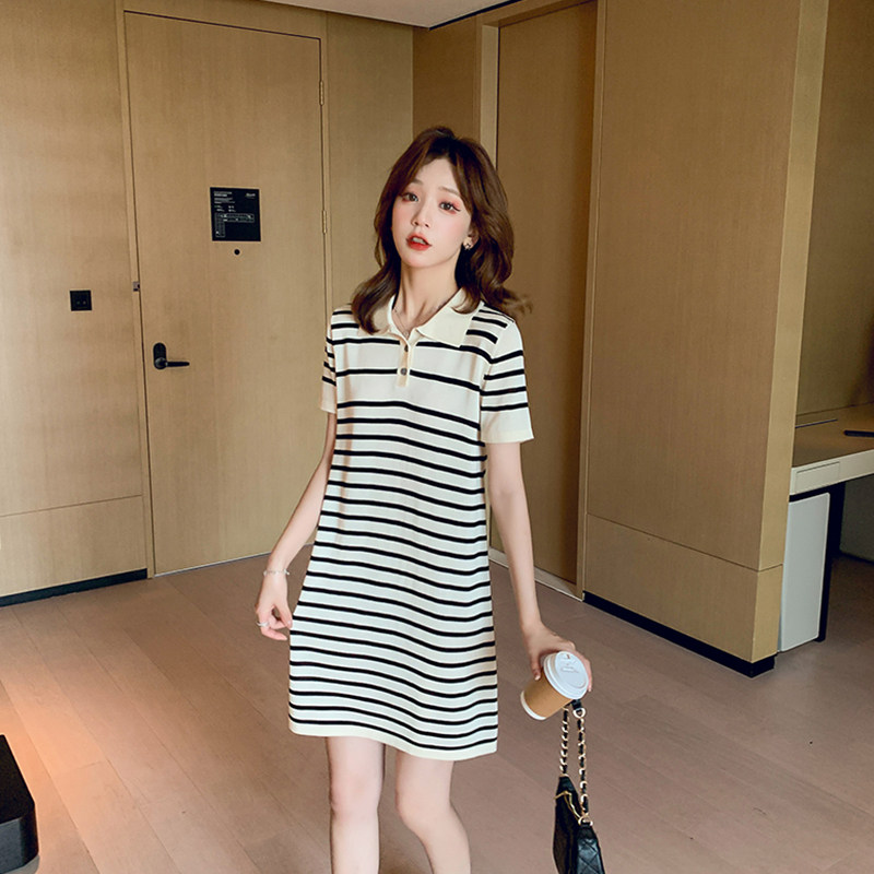 Летнее платье для отдыха, тонкая японская юбка, воротник поло, коллекция 2021, короткий рукав