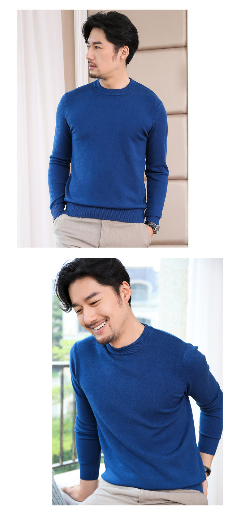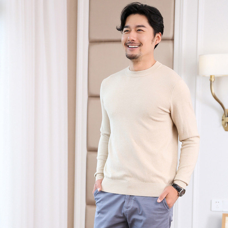 Осенний кашемировый зимний шерстяной трикотажный свитер с круглым воротником для отдыха