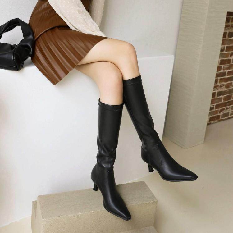 Осень и зима, но сапоги с высоким коленом тонкие каблуки 33 высокий каблук одиночные ботинки 444546 ботинки тонкие ботинки кожаные ботинки женские ботинки