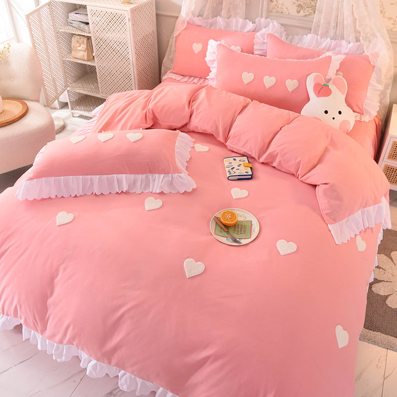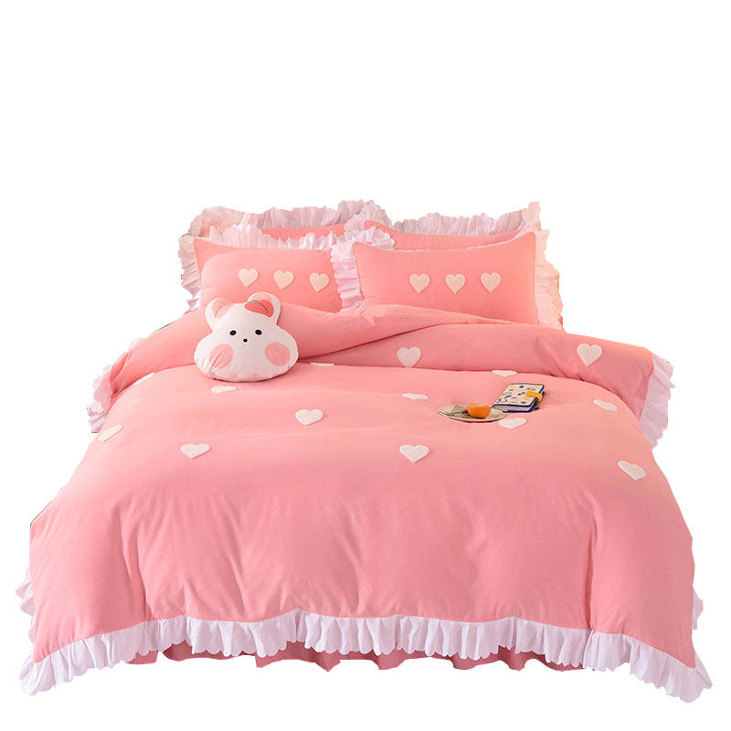 - Комплект из четырех предметов с юбкой-кроватью длиной 1,8 м (пододеяльник 200*230 см + юбка-кровать 180*200 см + пара наволочек)