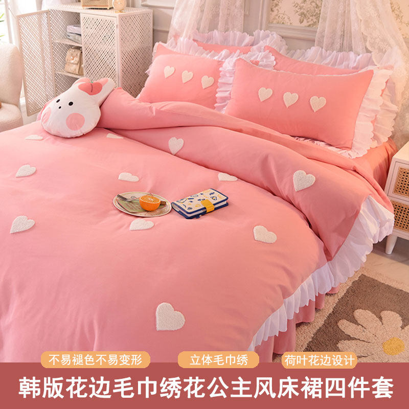 - Комплект из четырех предметов с юбкой-кроватью длиной 1,5 м (пододеяльник 200*230 см+ юбка-кровать 150*200 см+ пара наволочек)