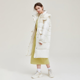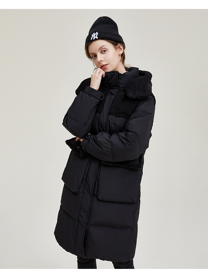Удерживающий тепло модный длинный трендовый пуховик с капюшоном, тренд сезона, средней длины