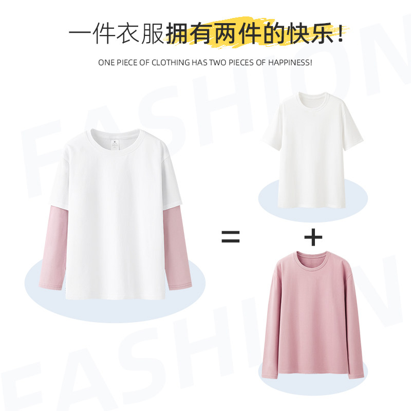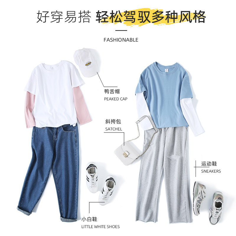 Осенний демисезонный лонгслив, футболка для отдыха, хлопковый комплект, оверсайз, свободный прямой крой
