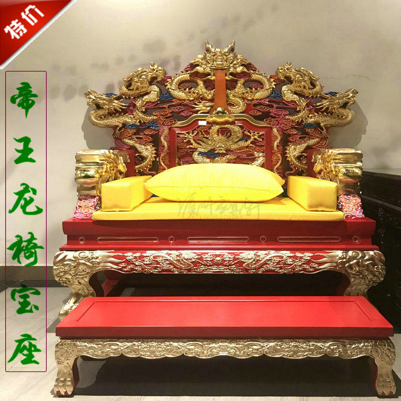 Стул Дракон с твердым деревом Трон Древний Древний резной дракон, прослеживающий золотой мана -дворец