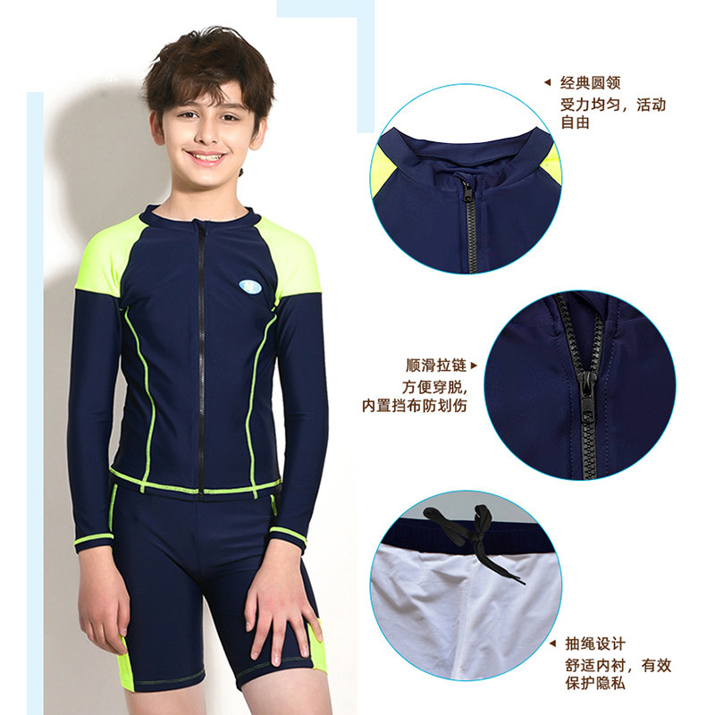 Детский купальник, лонгслив для мальчиков, комплект, раздельные штаны для школьников и студентов, подходит для подростков