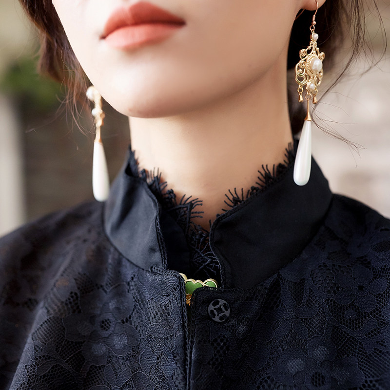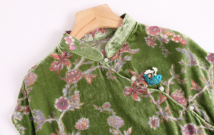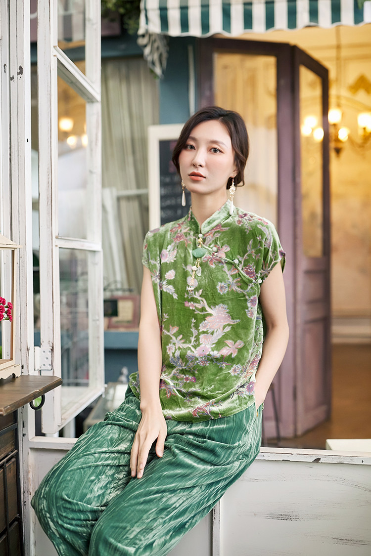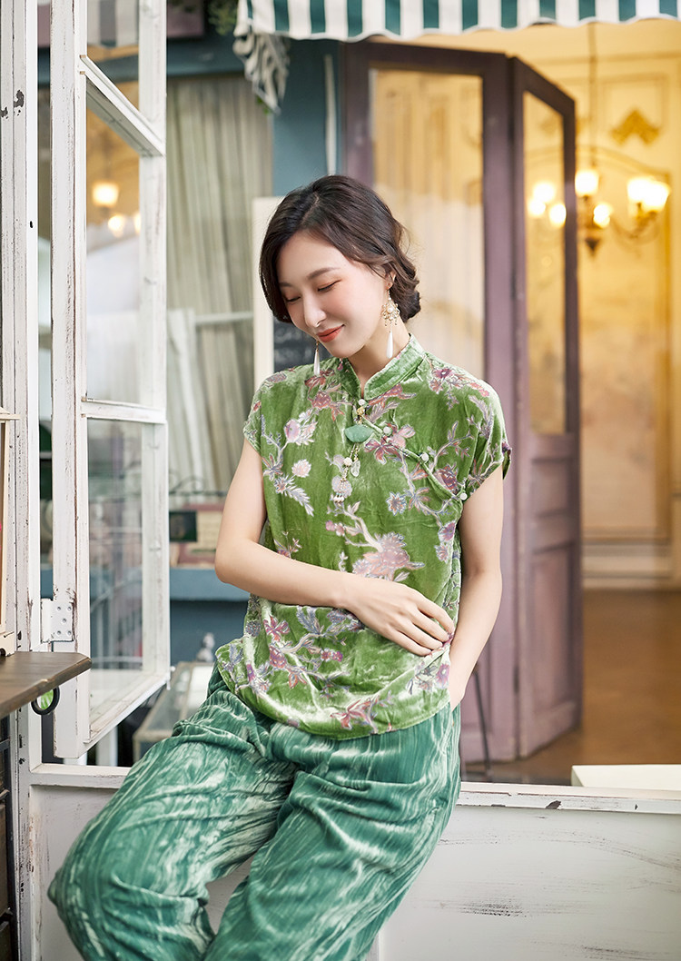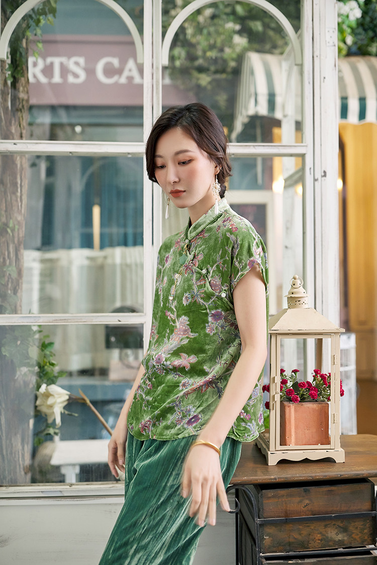 Шелковая бархатная ретро летняя футболка, тонкое плетение, китайский стиль, короткий рукав