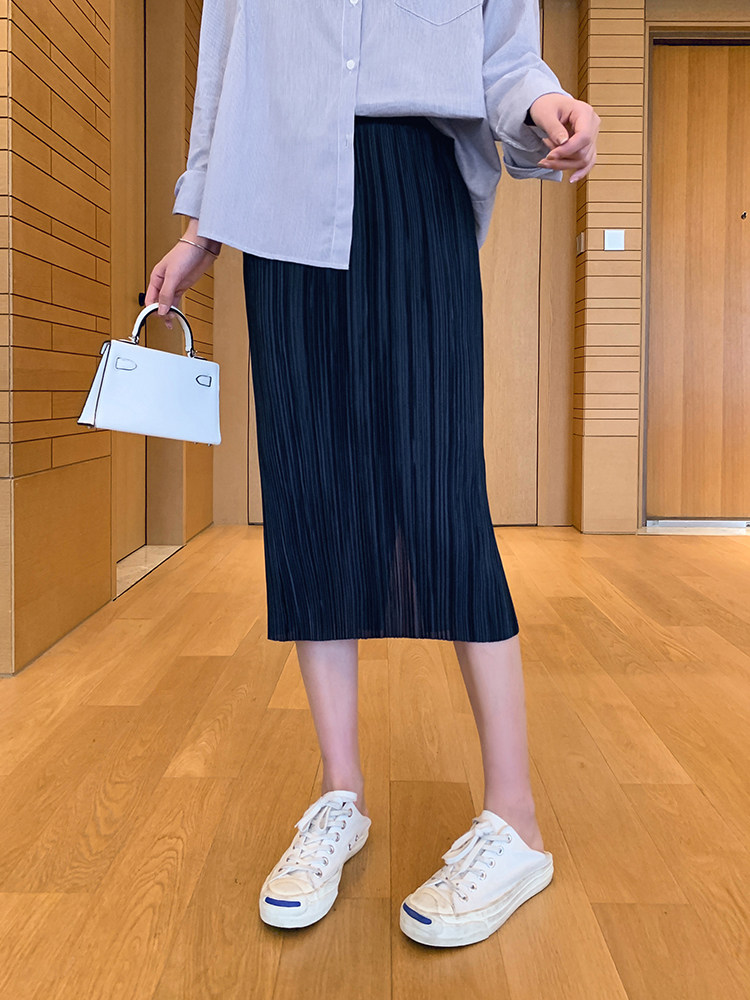 Длинная ретро тонкая юбка в складку, яркий броский стиль, средней длины