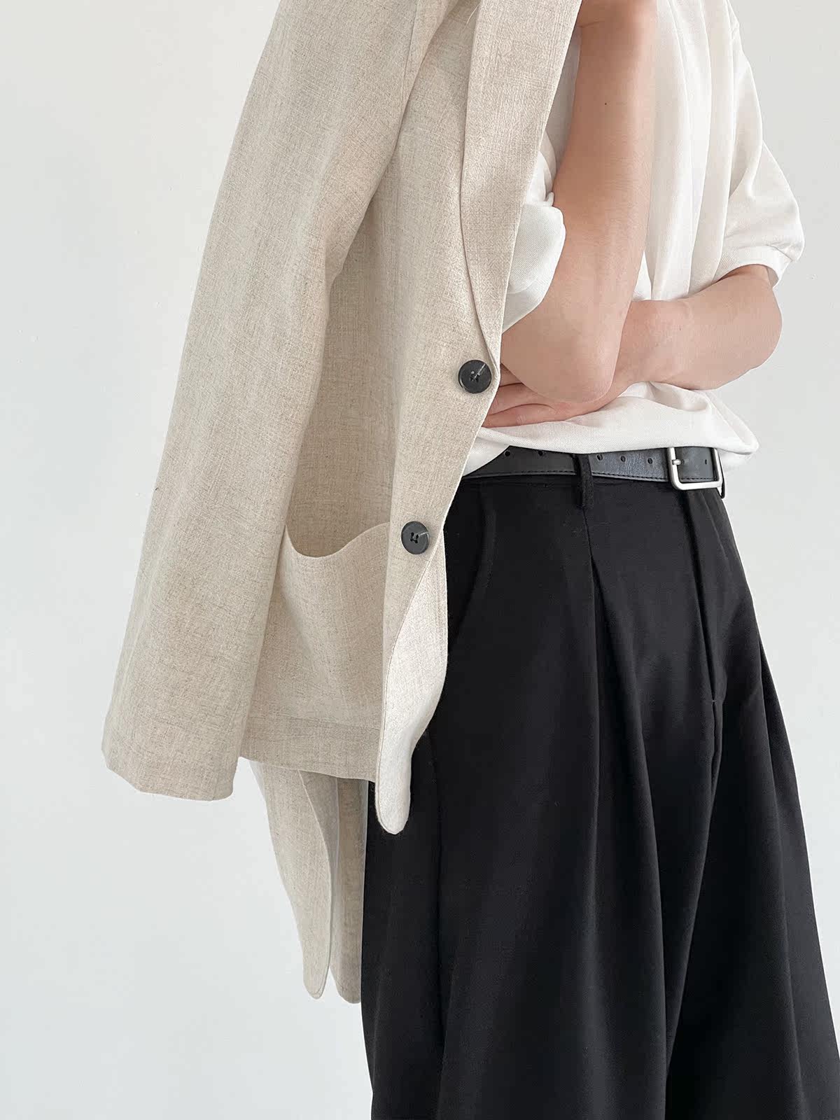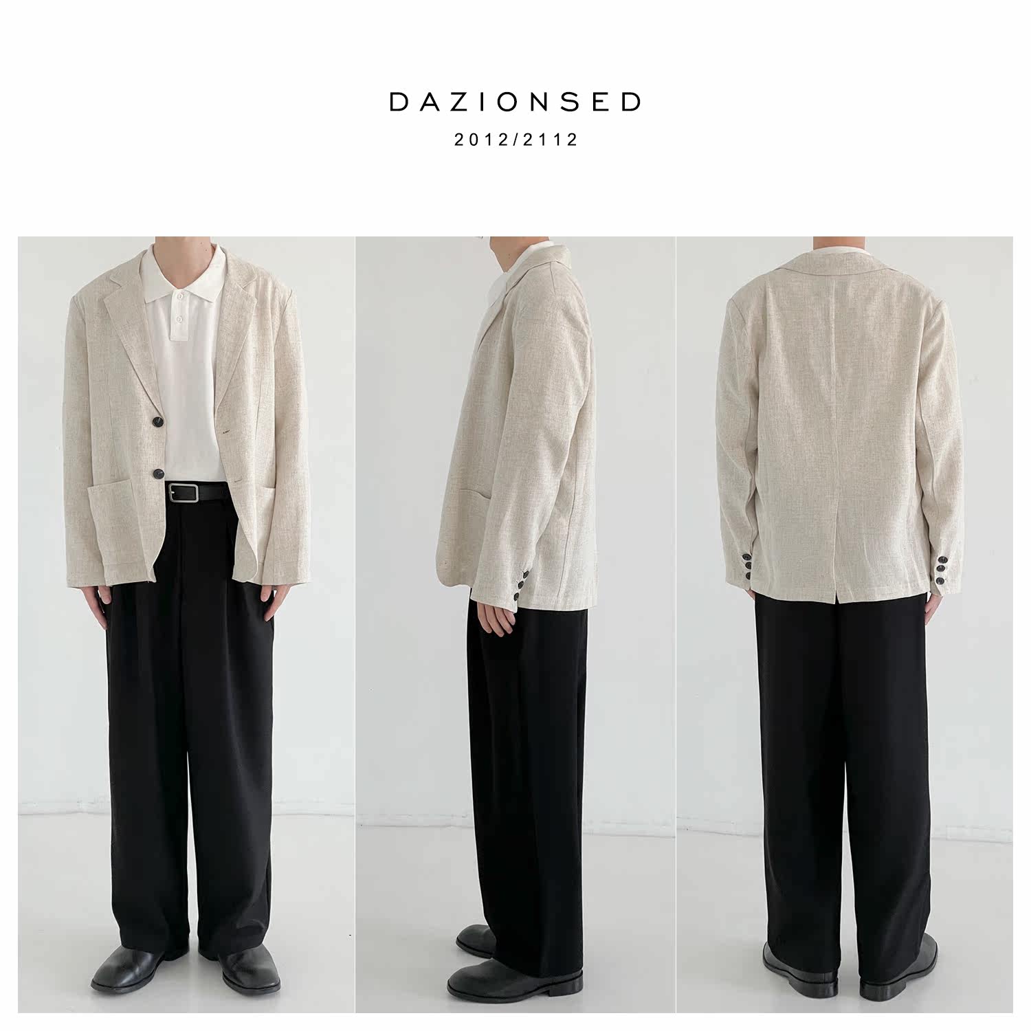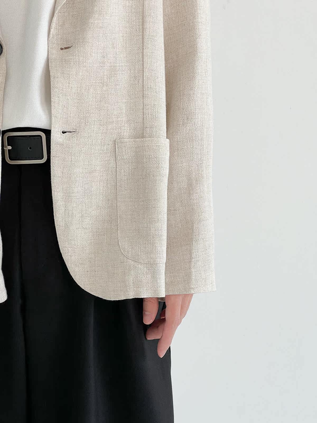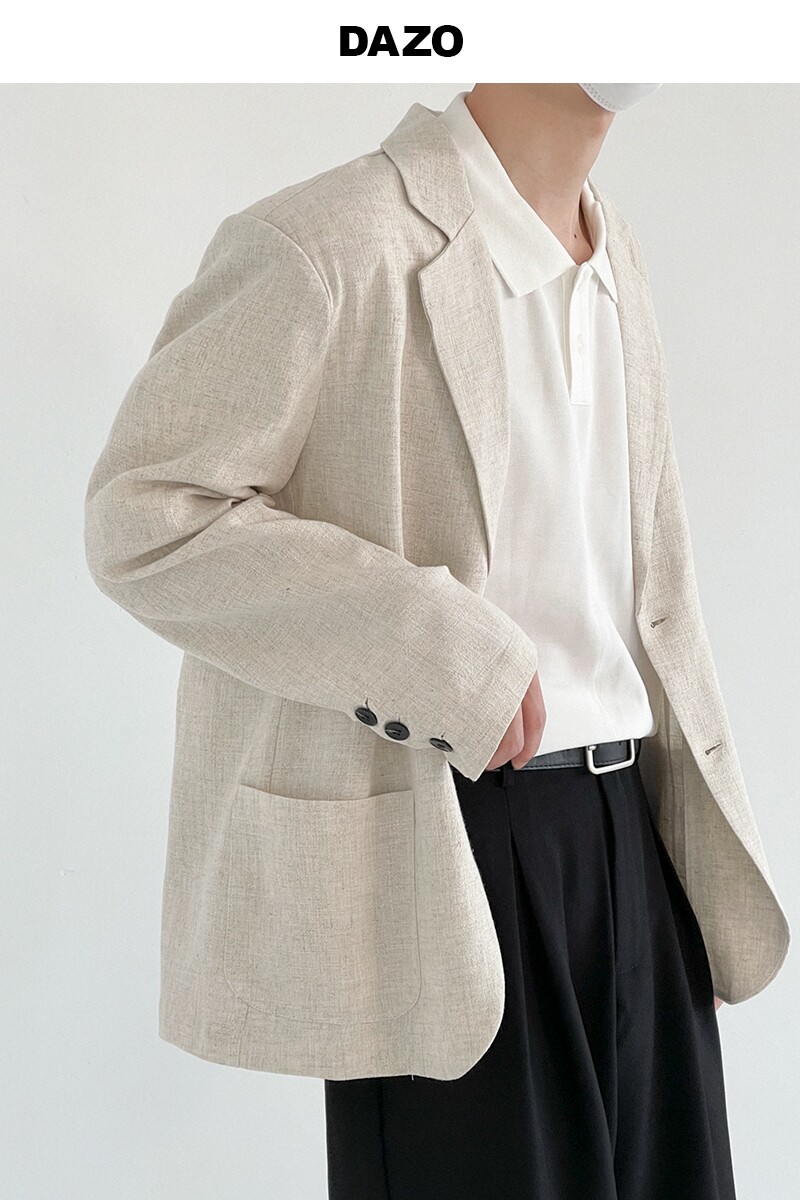 Осенний тонкий костюм, брендовая универсальная куртка, из хлопка и льна, в корейском стиле, оверсайз