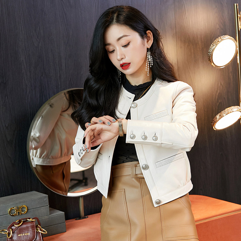 Белая куртка, изысканный стиль, коллекция 2023, в стиле Шанель, подходит для подростков, из натуральной кожи