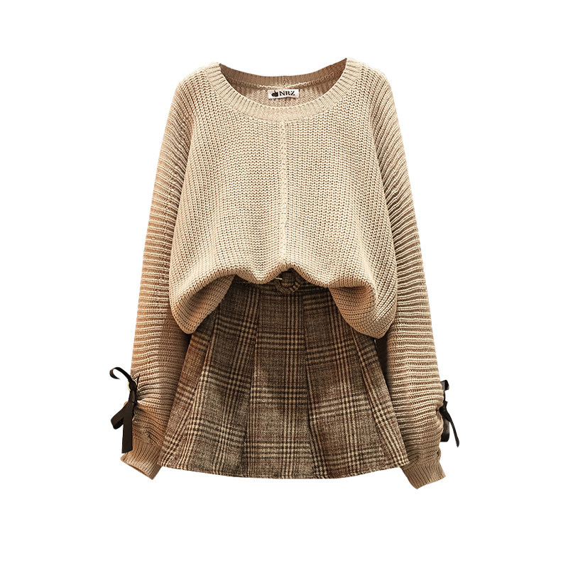 Брендовый модный трикотажный свитер, юбка, комплект, большой размер