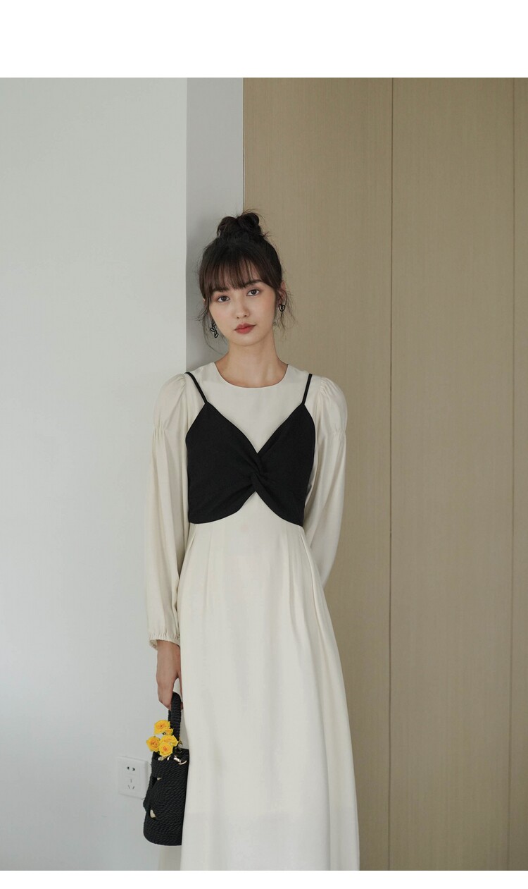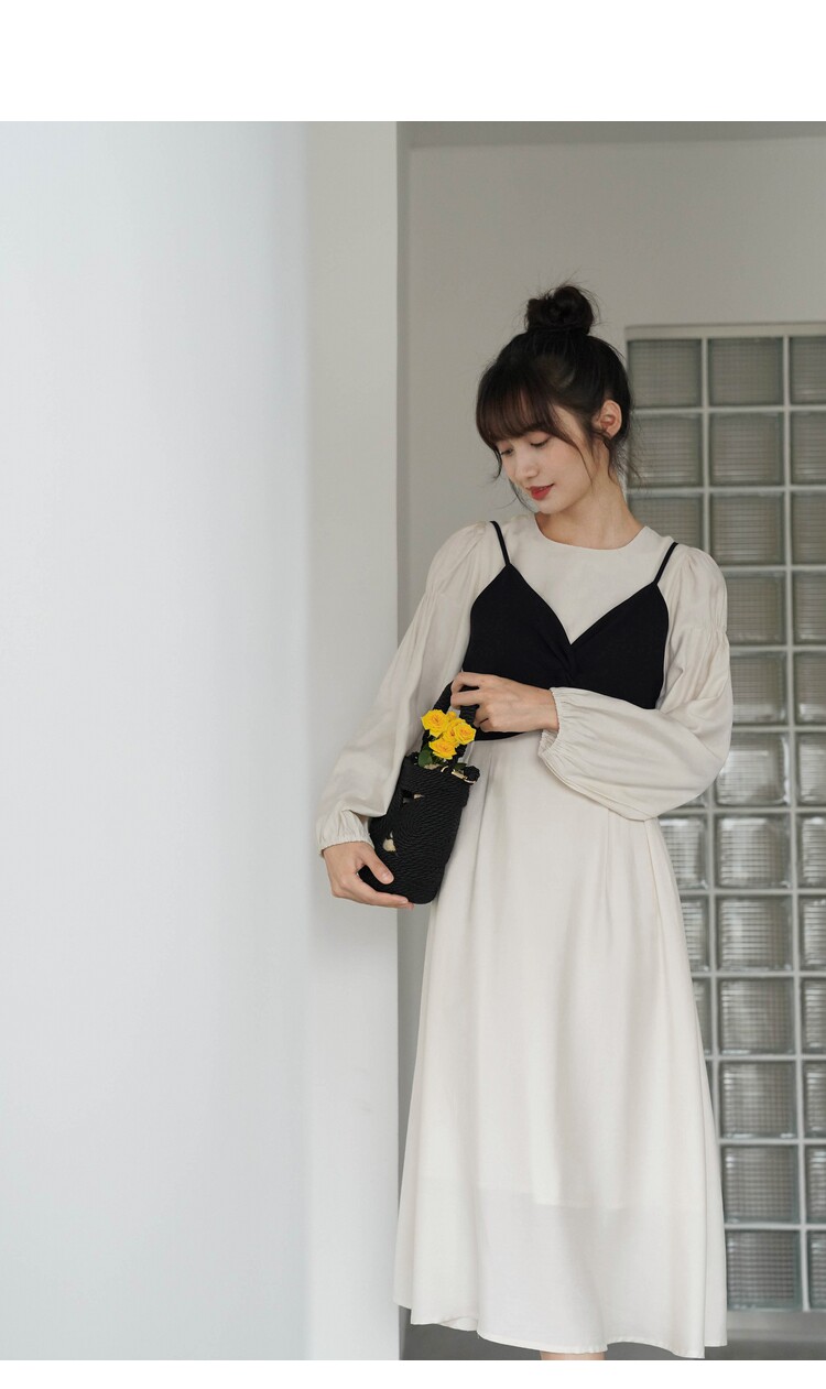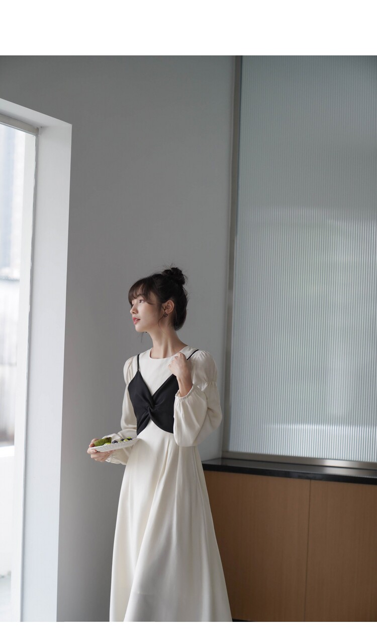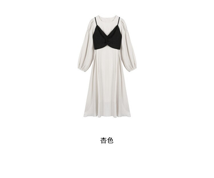 Платье с круглым воротником, комплект, весенняя длинная юбка, рукава фонарики, коллекция 2022, простой и элегантный дизайн, высокая талия