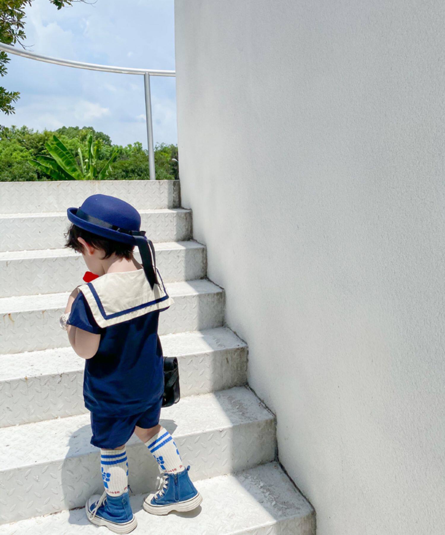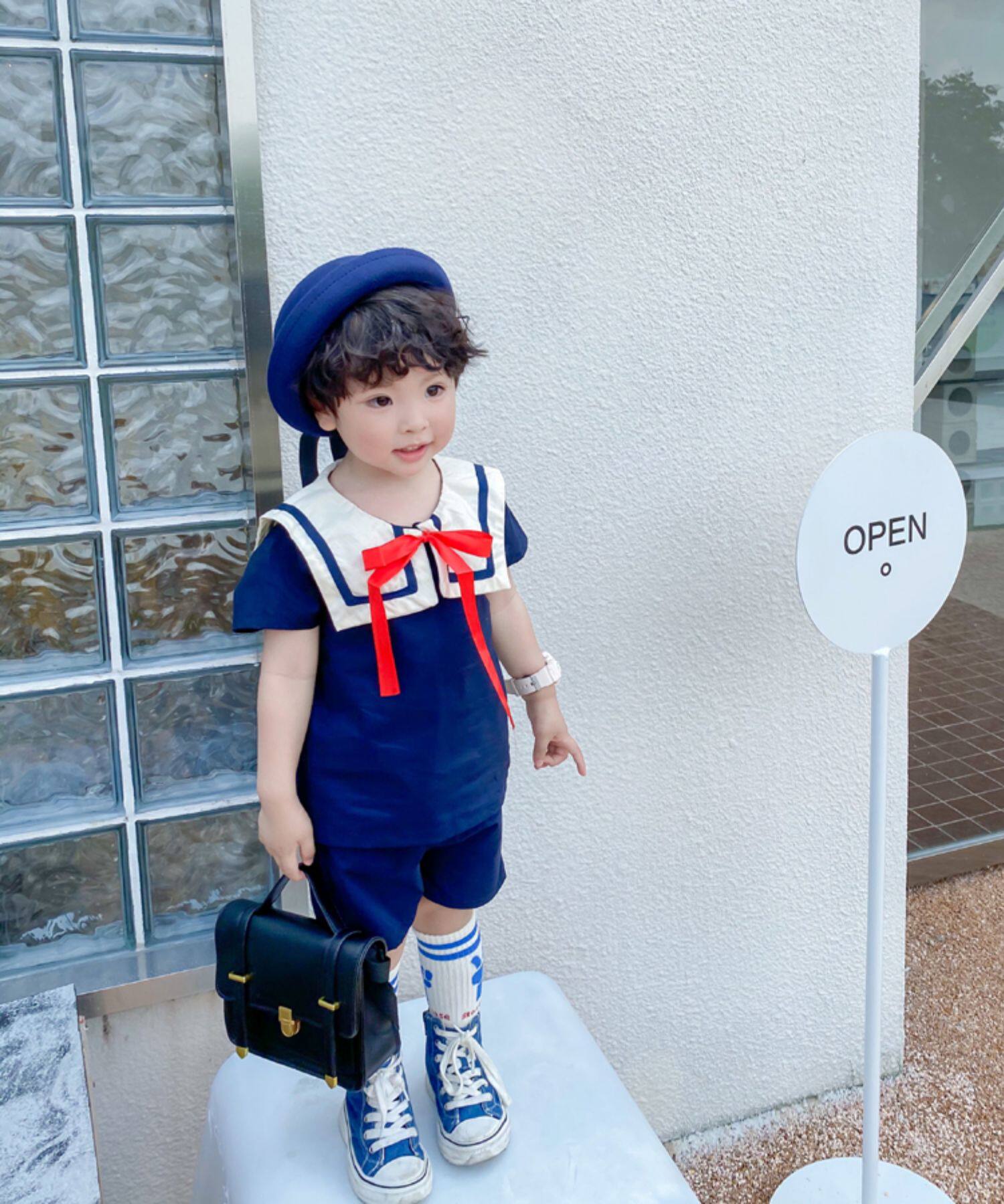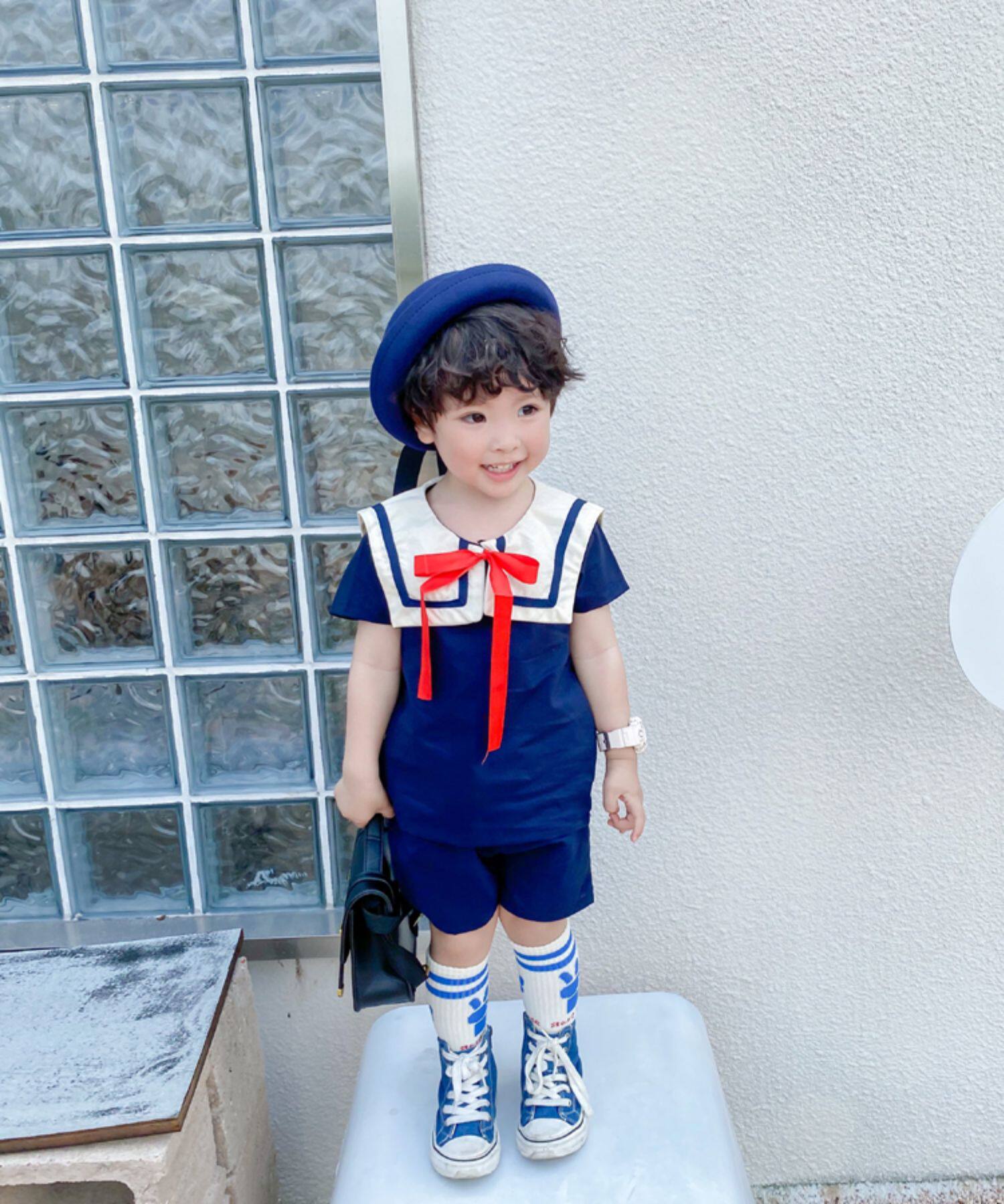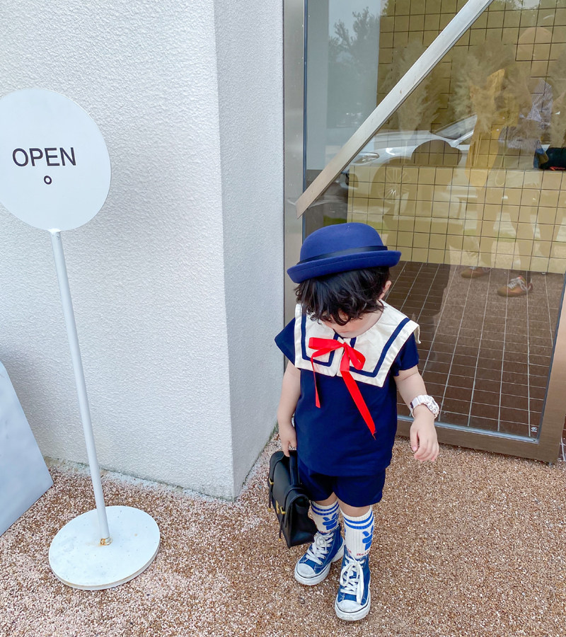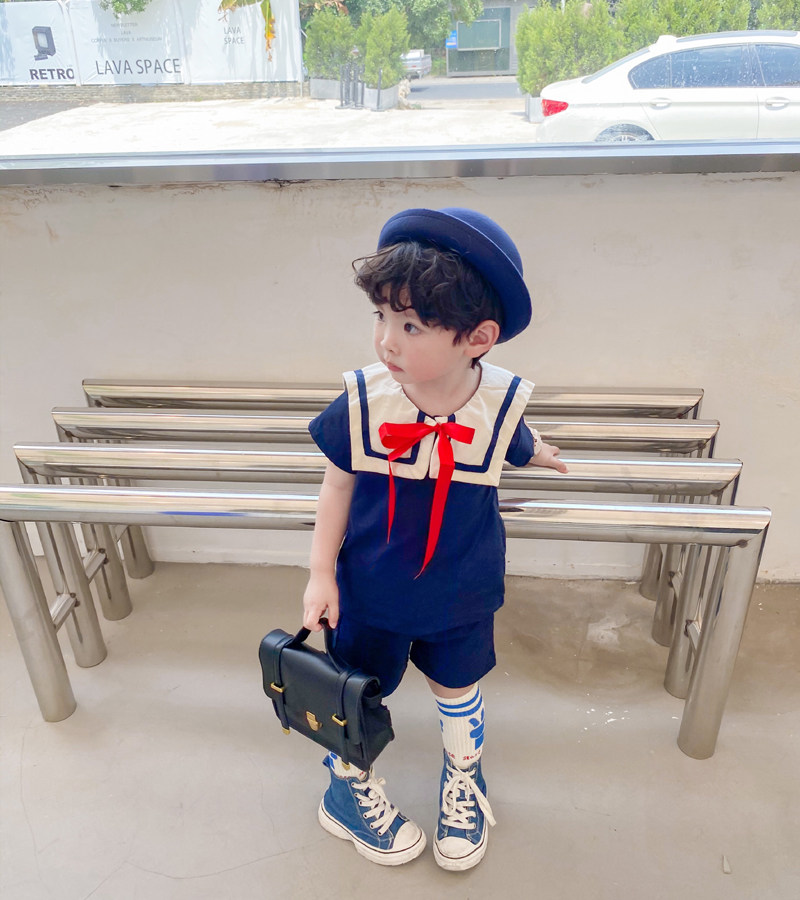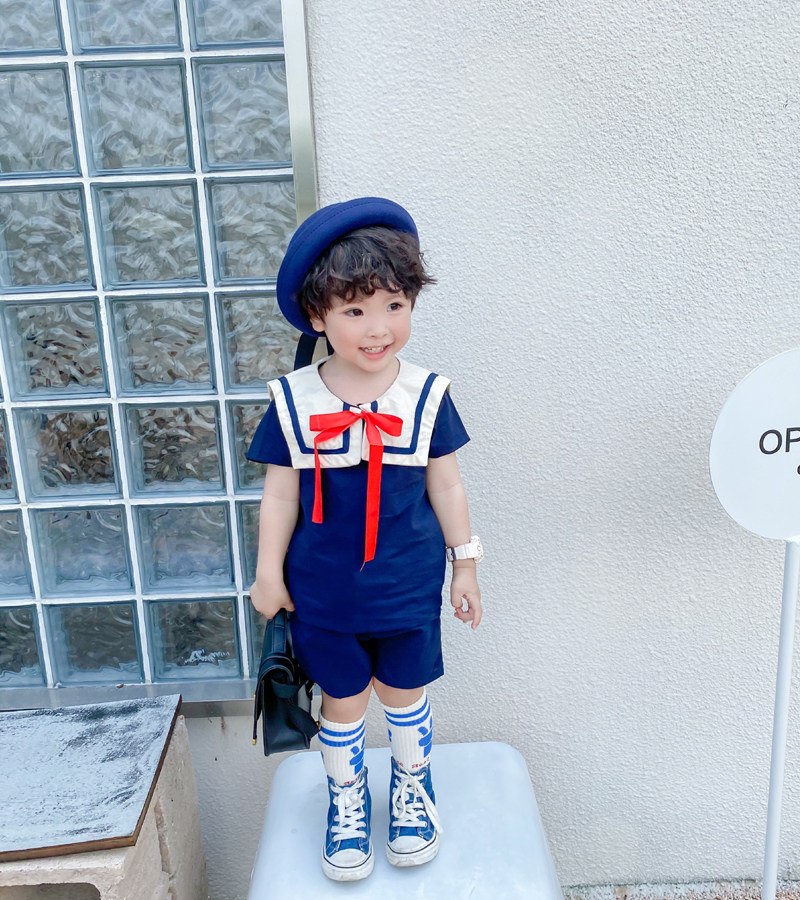 Детский комплект подходит для мужчин и женщин, военно-морская форма, короткий рукав