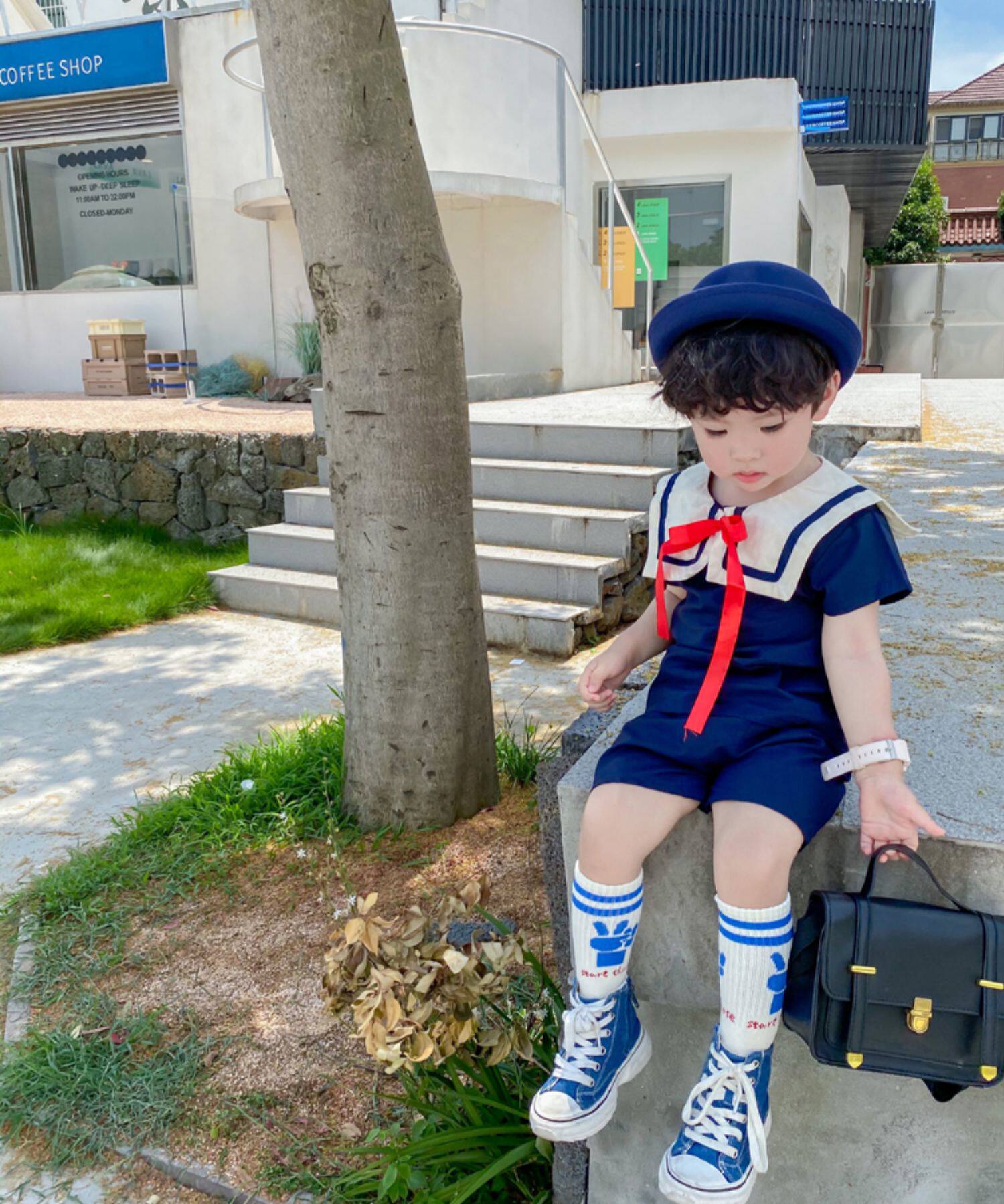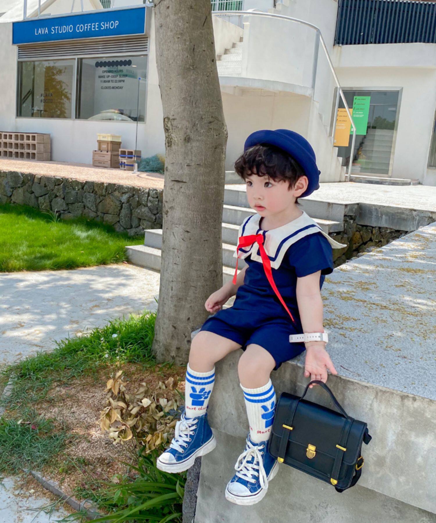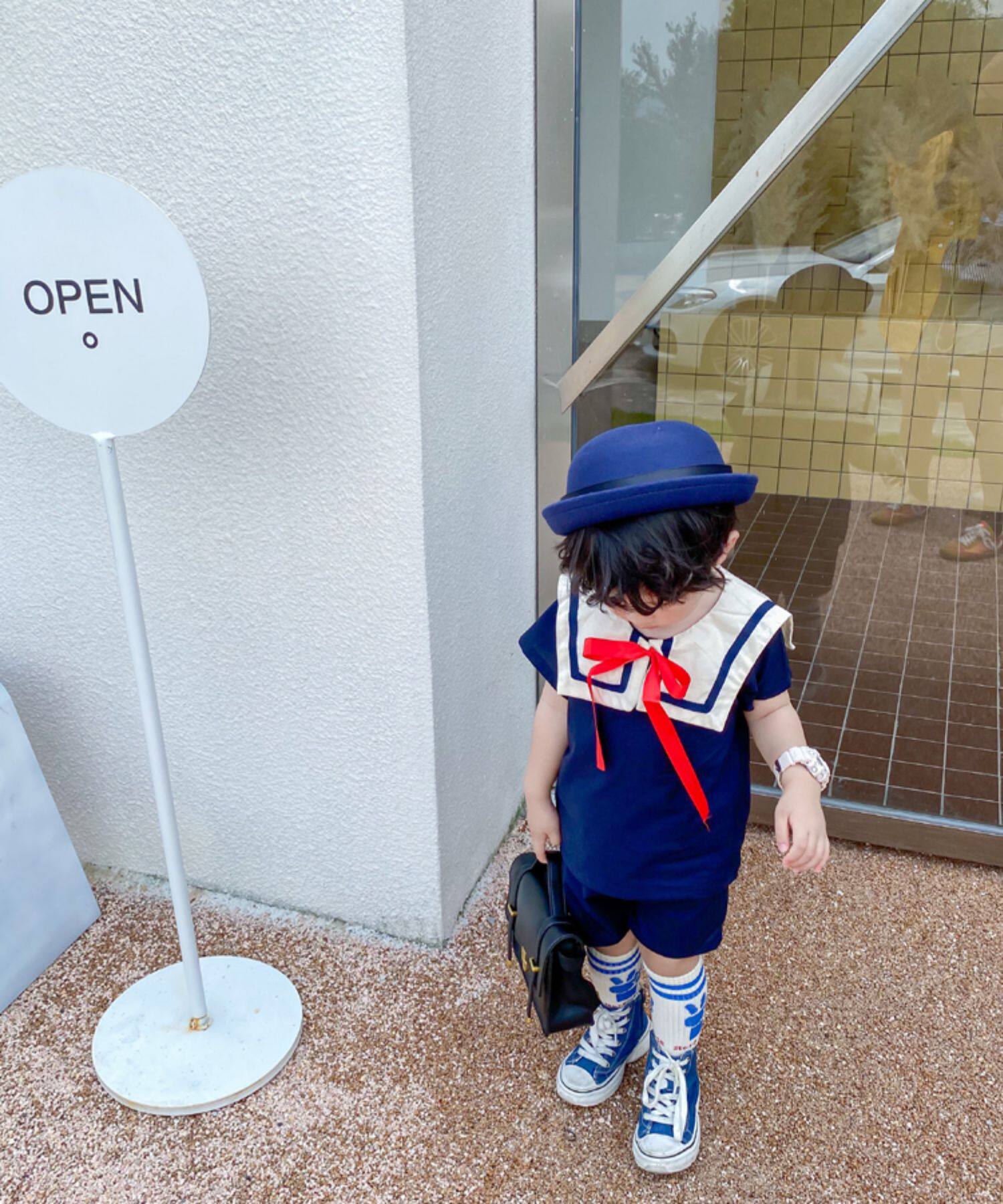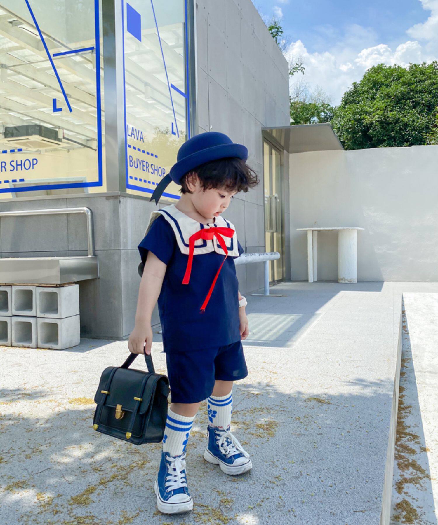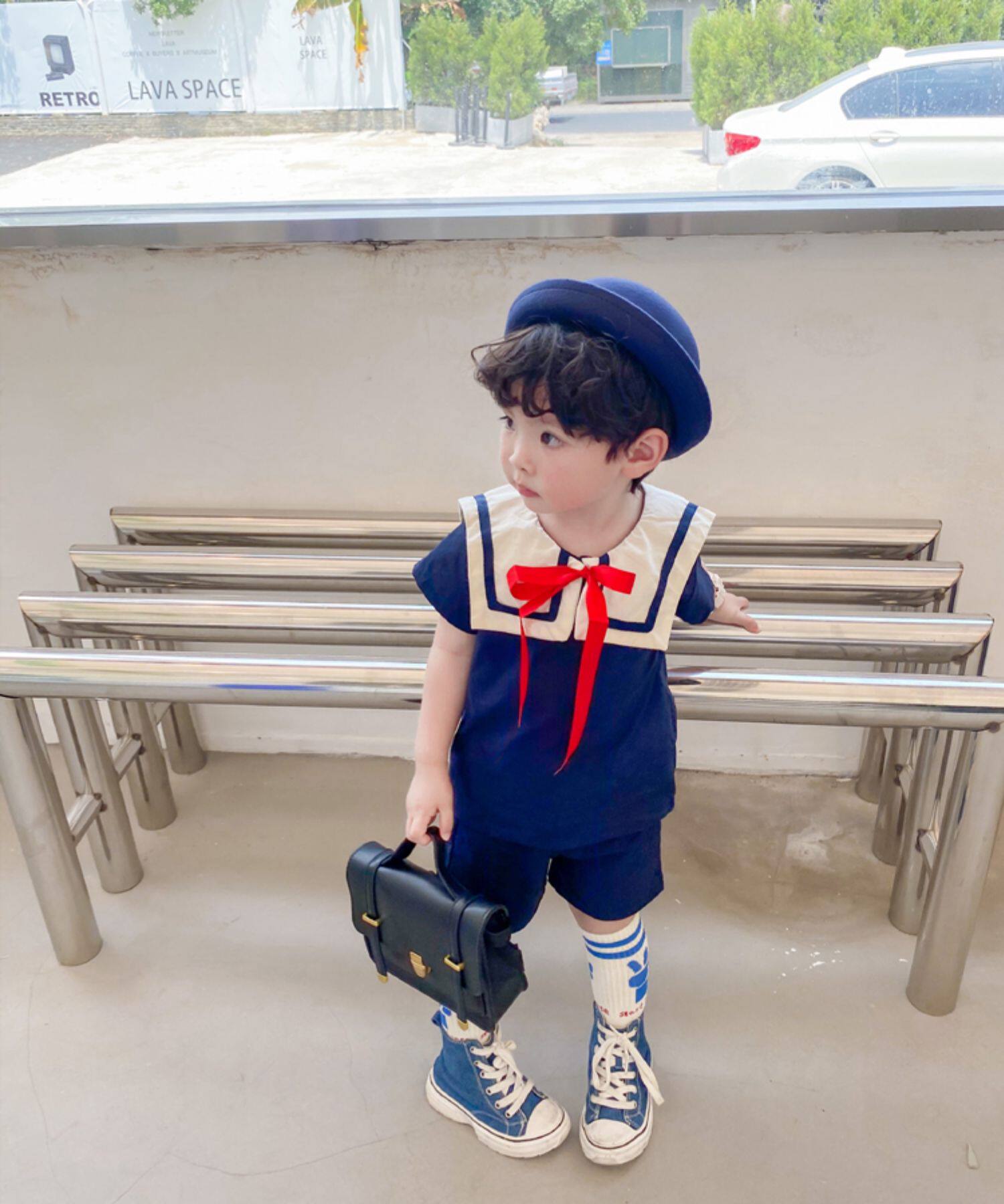 Детский комплект подходит для мужчин и женщин, военно-морская форма, короткий рукав