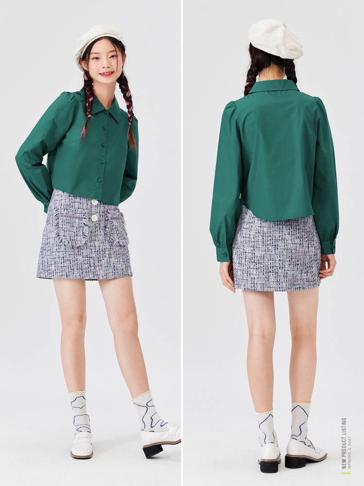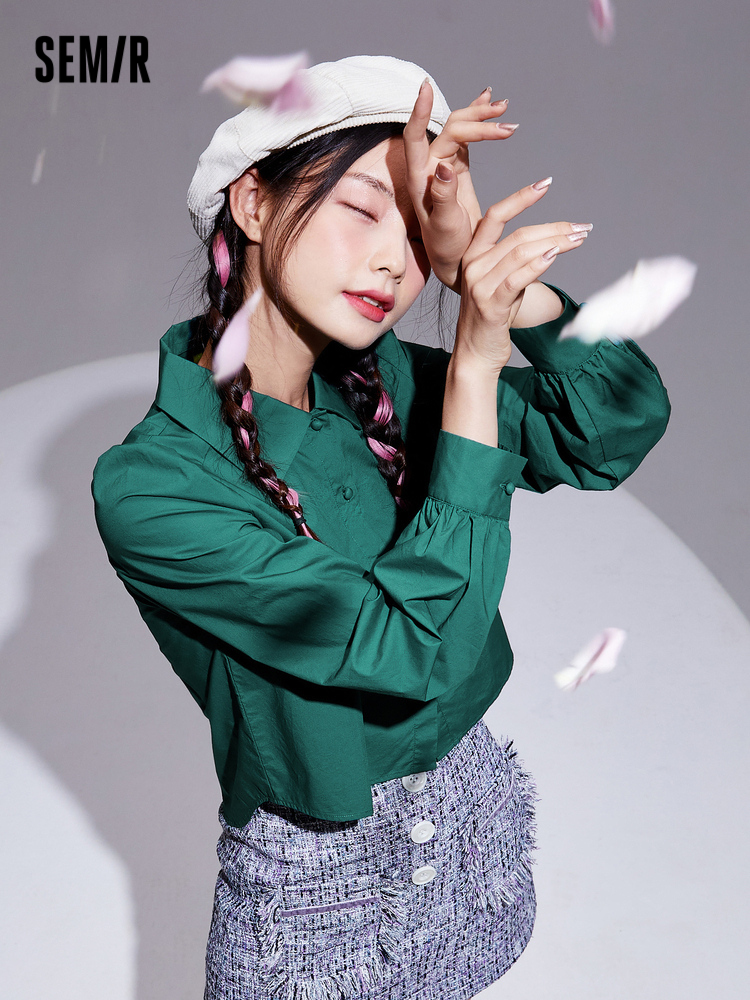 Semir, осенняя хлопковая ретро рубашка, рукава фонарики, коллекция 2021, французский стиль