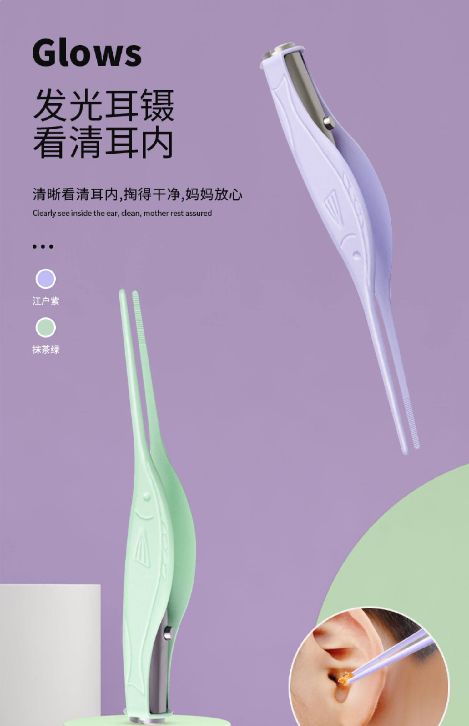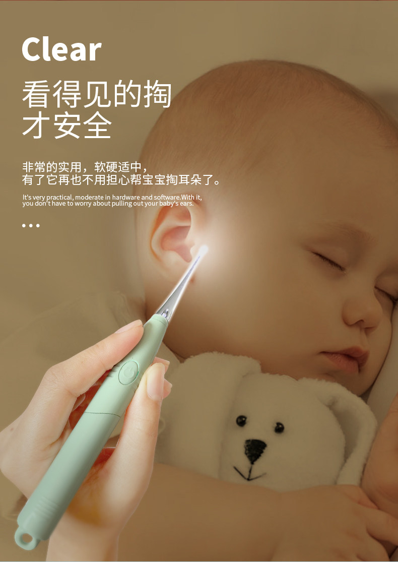 Детская светящаяся ухочистка для раннего возраста для ушей, комплект