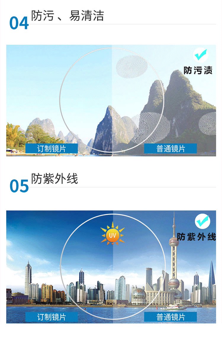 1.74 Двойной не -пешеческий ультра -тщательный высокий астигматизм может быть сопоставлен с высокой миопией 1,67 анти -блюд -световой индивидуальной линзы Физическое совпадение