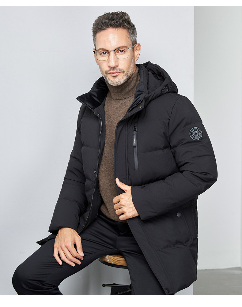 Длинный пуховик с капюшоном, средней длины, большой размер, для среднего возраста
