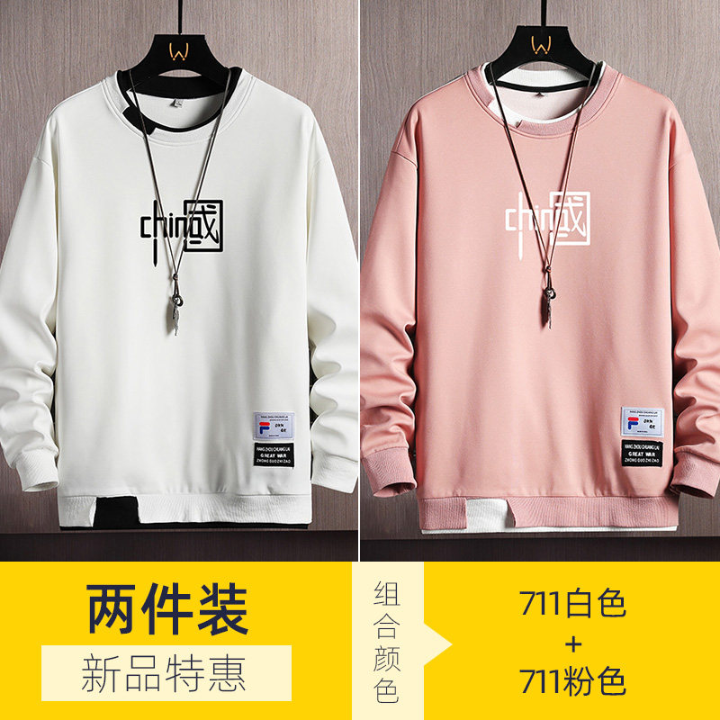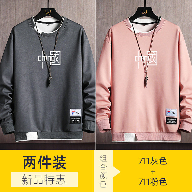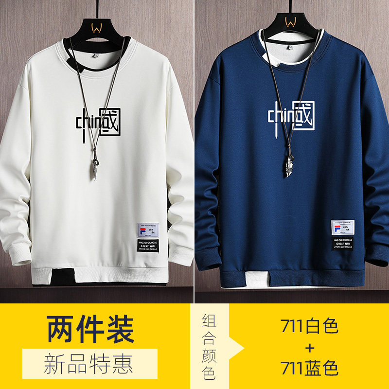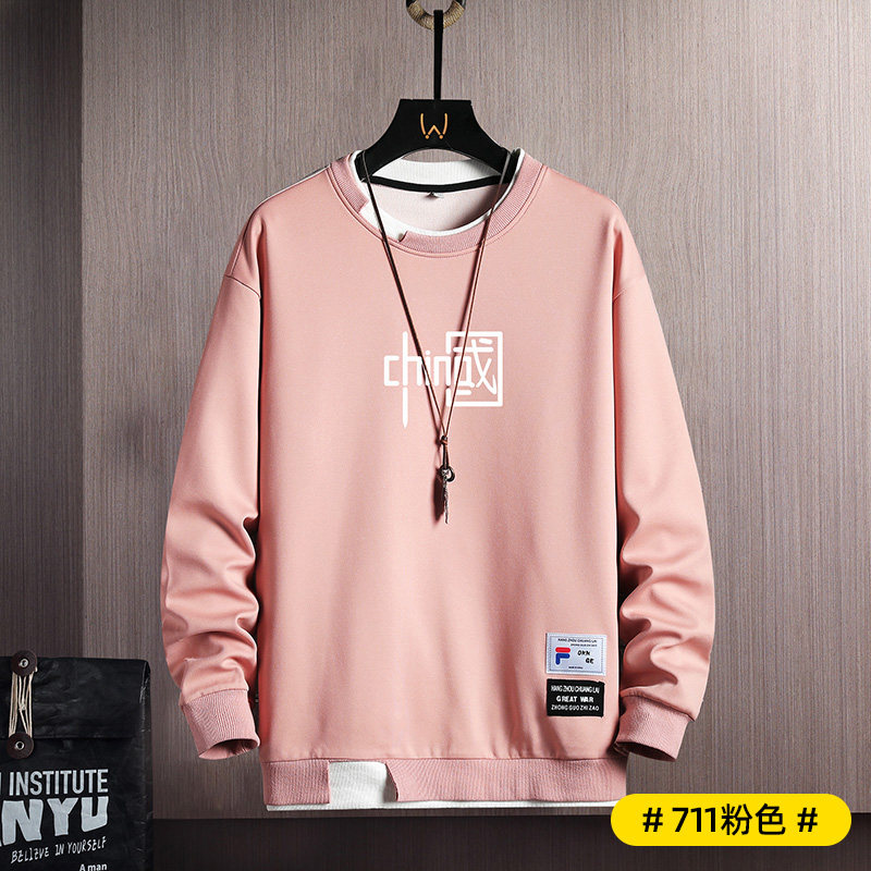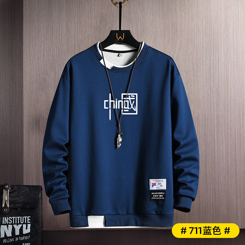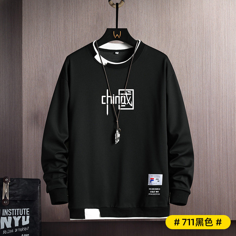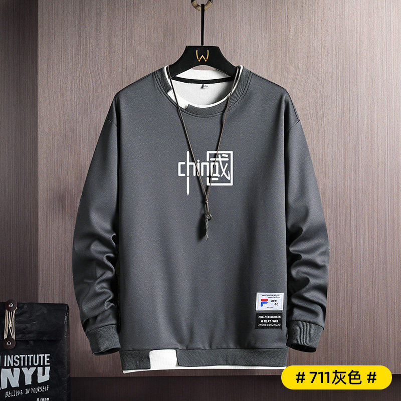 Мужская осенняя толстовка, пуховик, трендовый лонгслив с круглым воротником, футболка, 2022, в корейском стиле