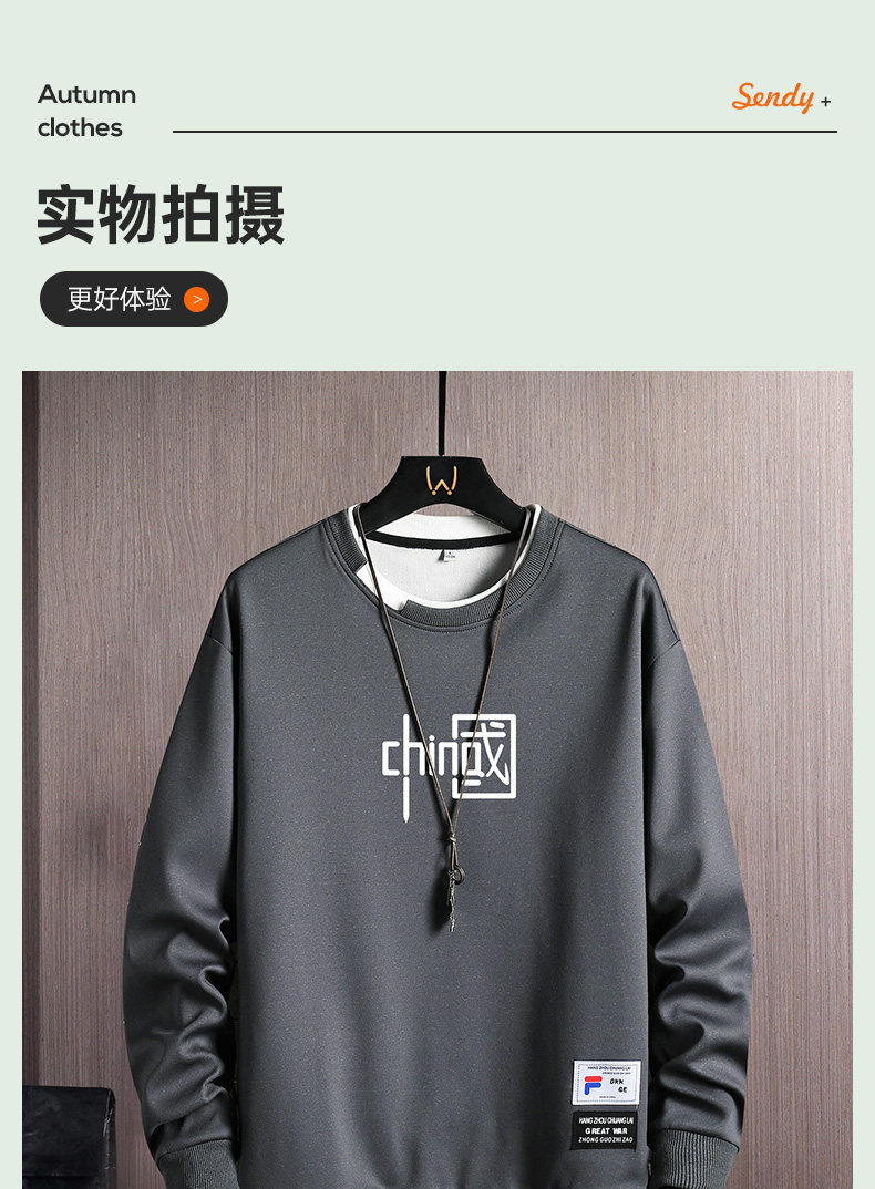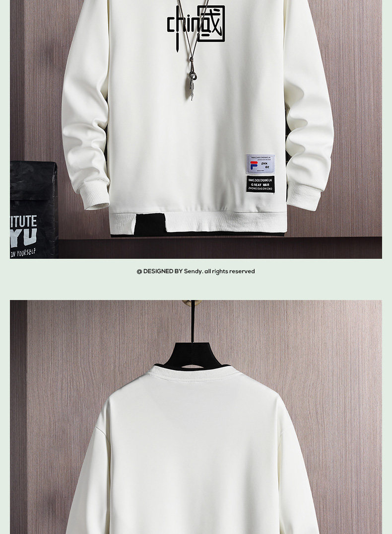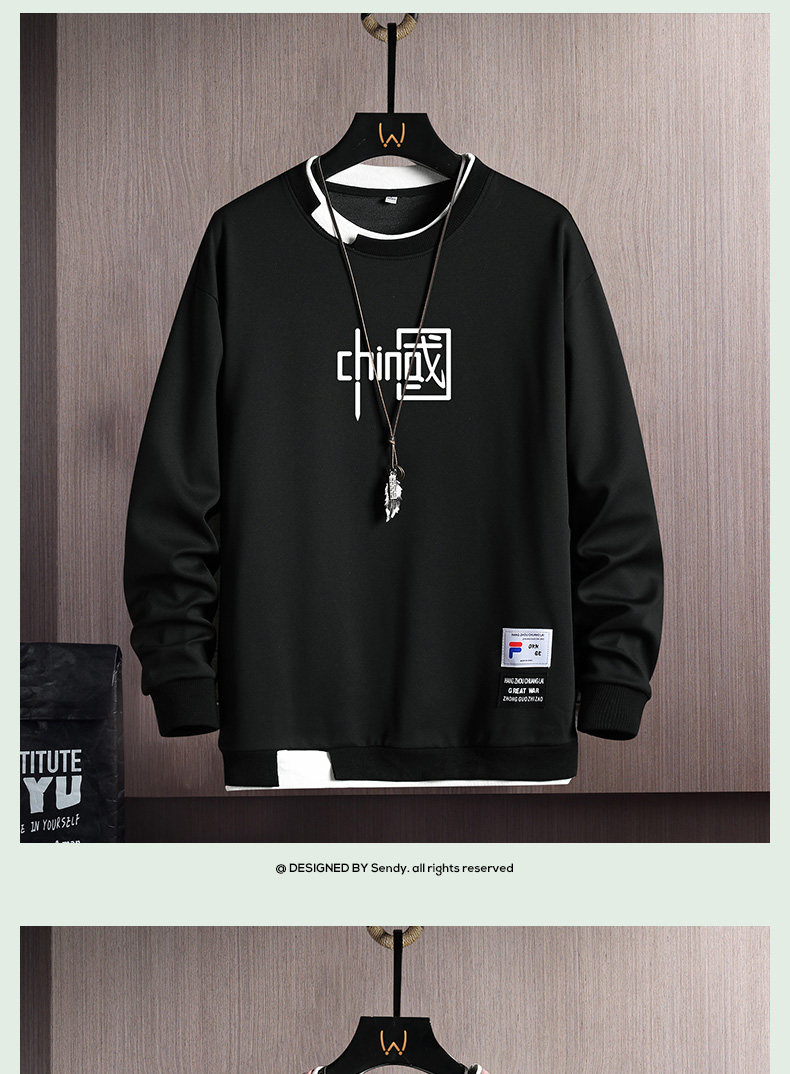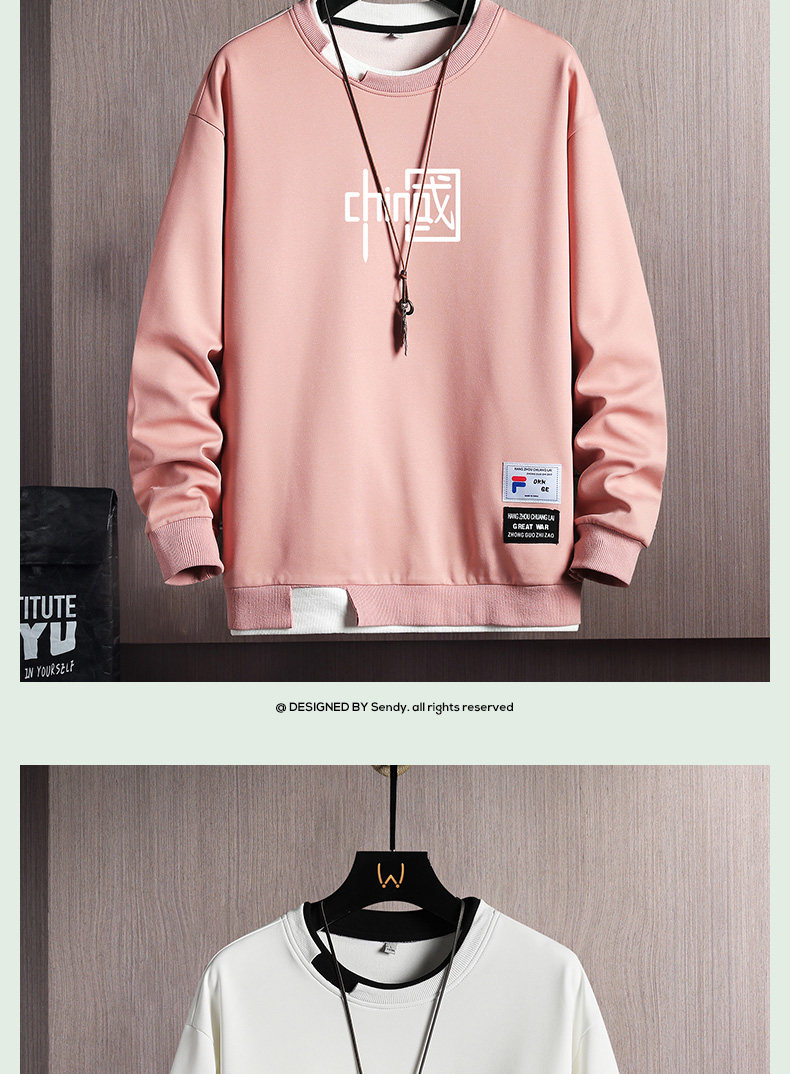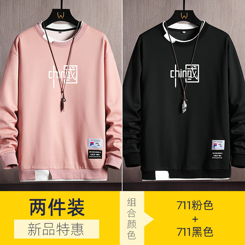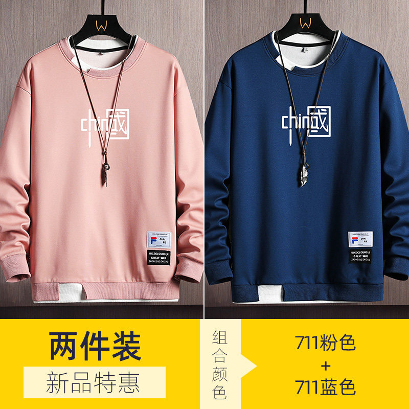 Мужская осенняя толстовка, пуховик, трендовый лонгслив с круглым воротником, футболка, 2022, в корейском стиле