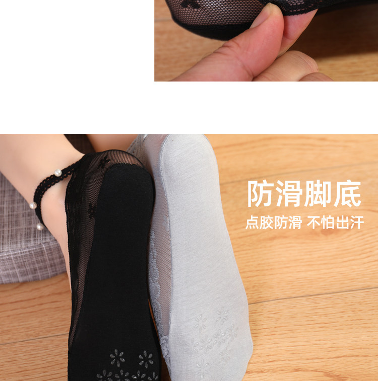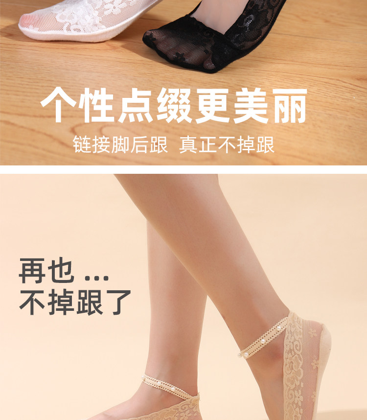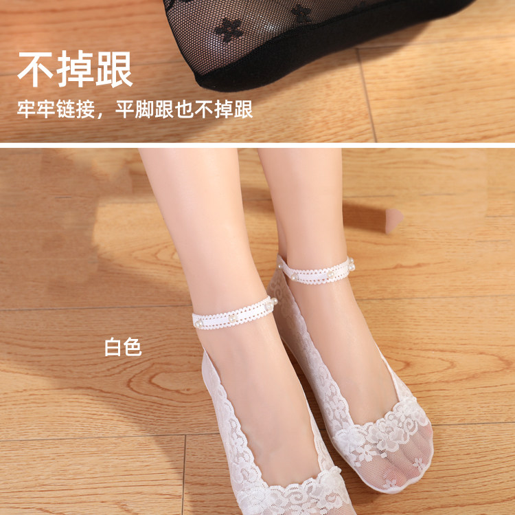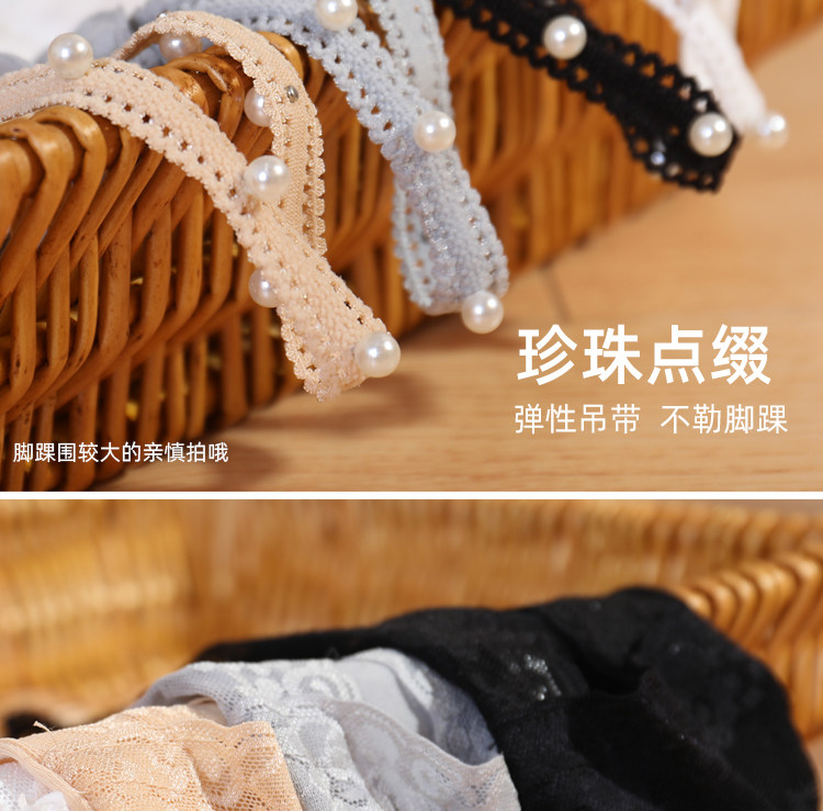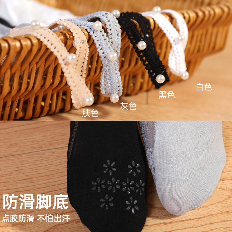 橙乙 Женские носки-лодочки с кружевными подтяжками и жемчугом, не падающие невидимые носки, однотонная хлопковая подошва, силиконовые нескользящие носки с мелким горлышком, летние