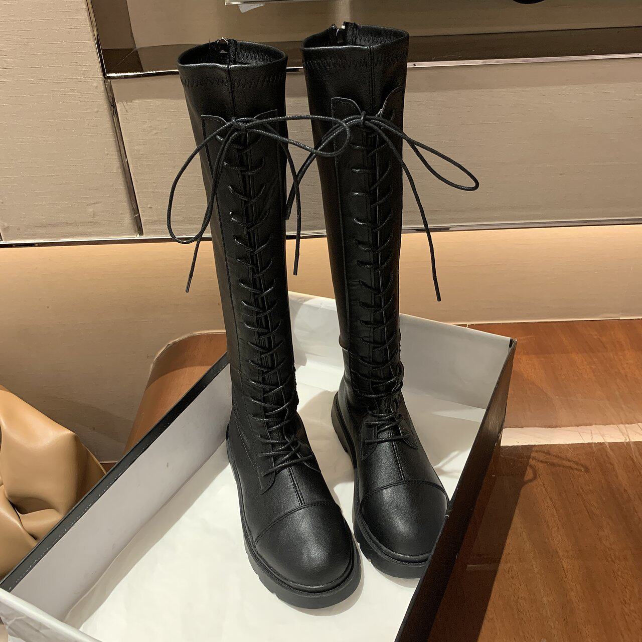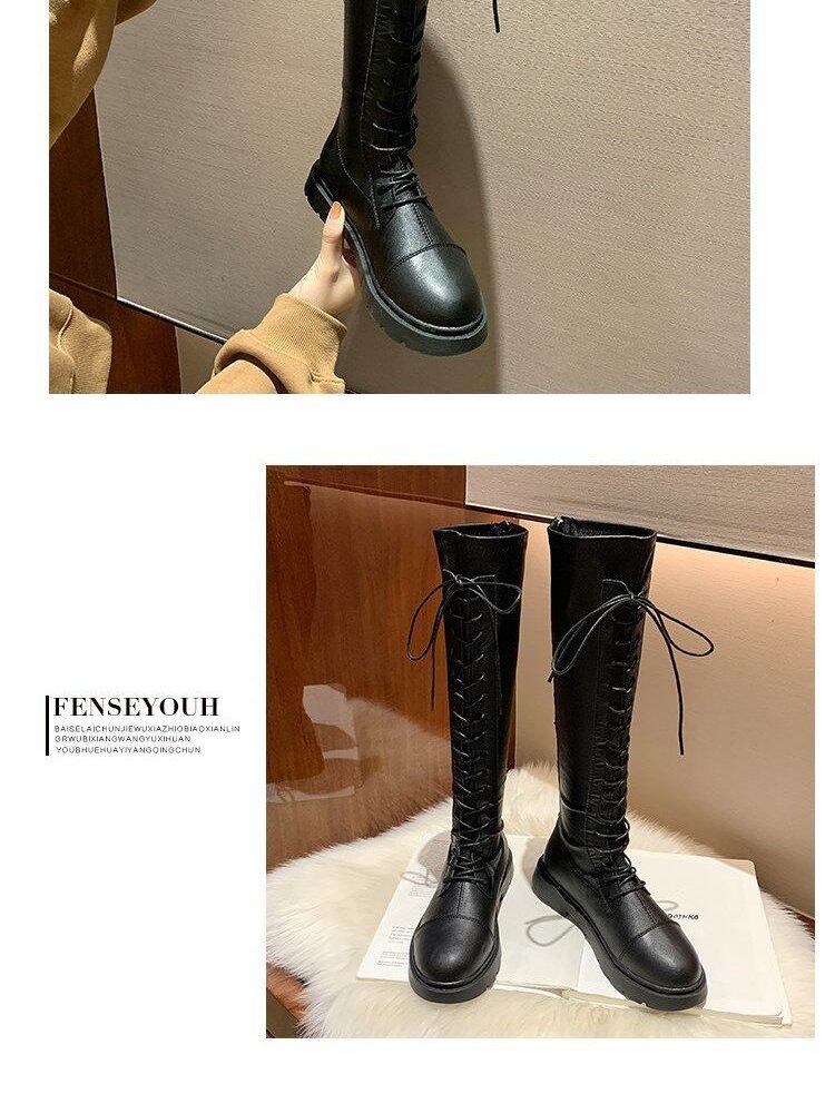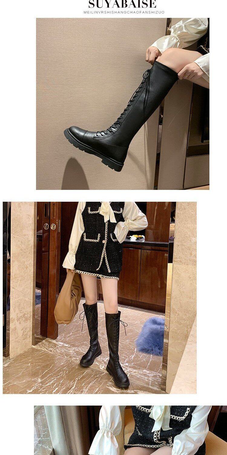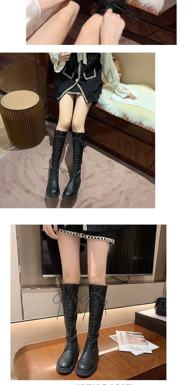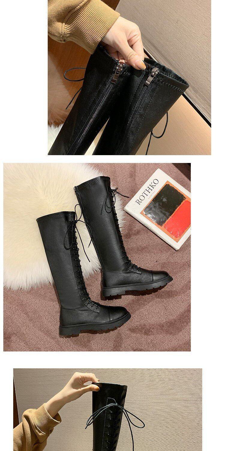 Martens, черные весенние тонкие демисезонные высокие сапоги, в корейском стиле, средней длины