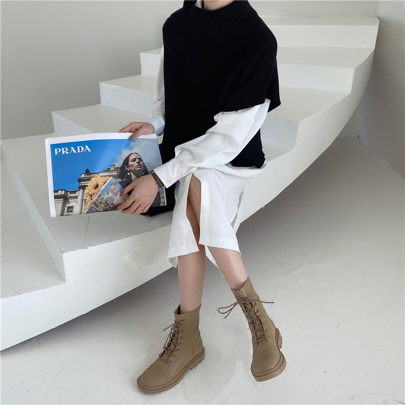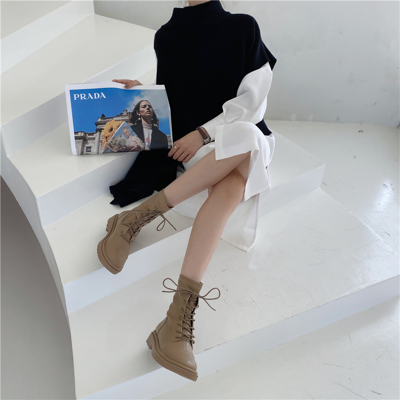 Martens, осенние короткие сапоги, ботинки, коллекция 2021, средней длины, французский стиль