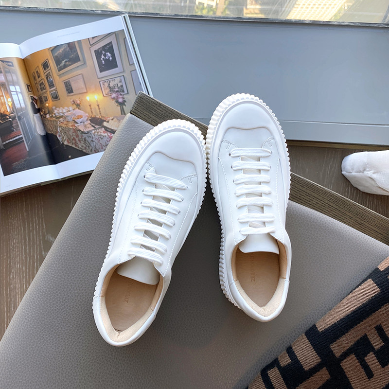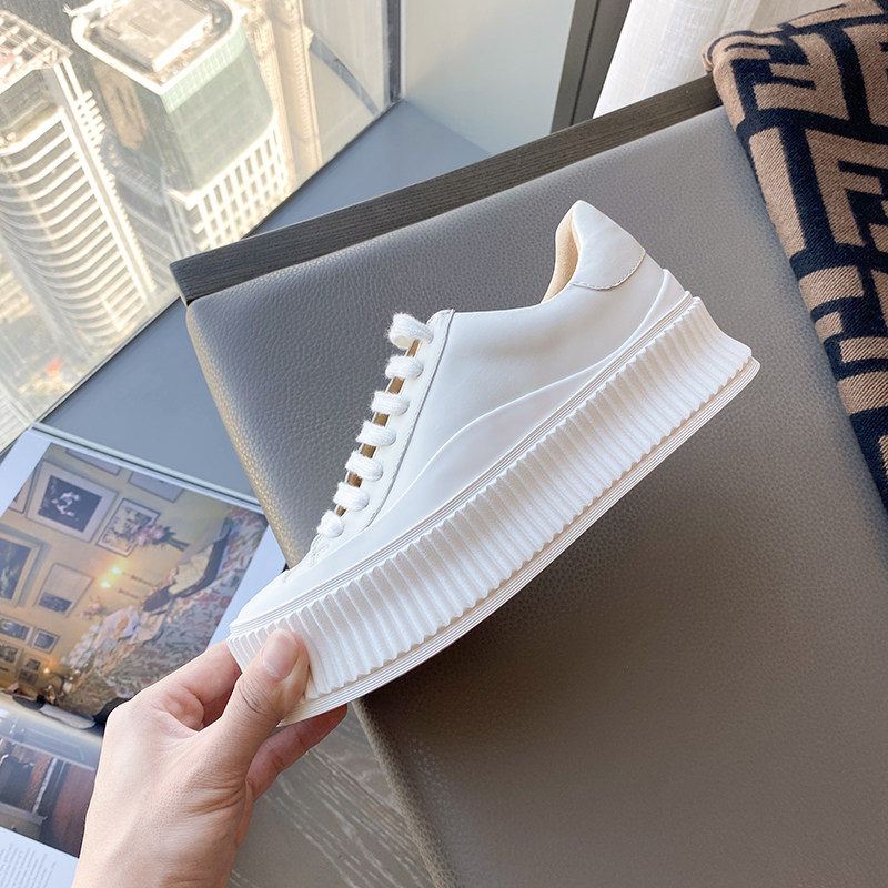 Высокая летняя белая обувь на платформе, универсальная белая повседневная обувь, кроссовки, популярно в интернете, из натуральной кожи